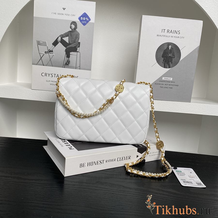 Chanel Folding Bag White Lambskin 22x15x5.5cm