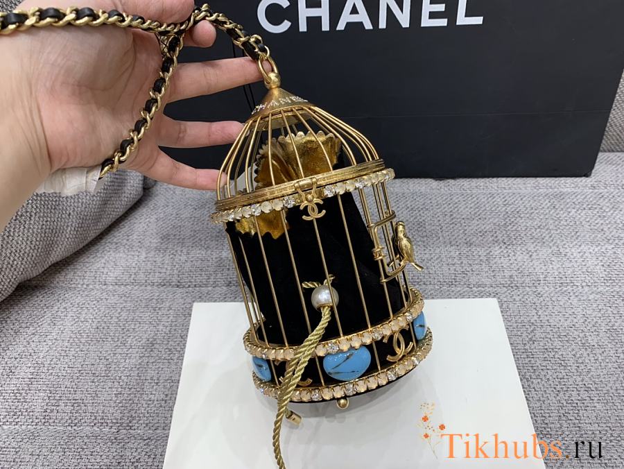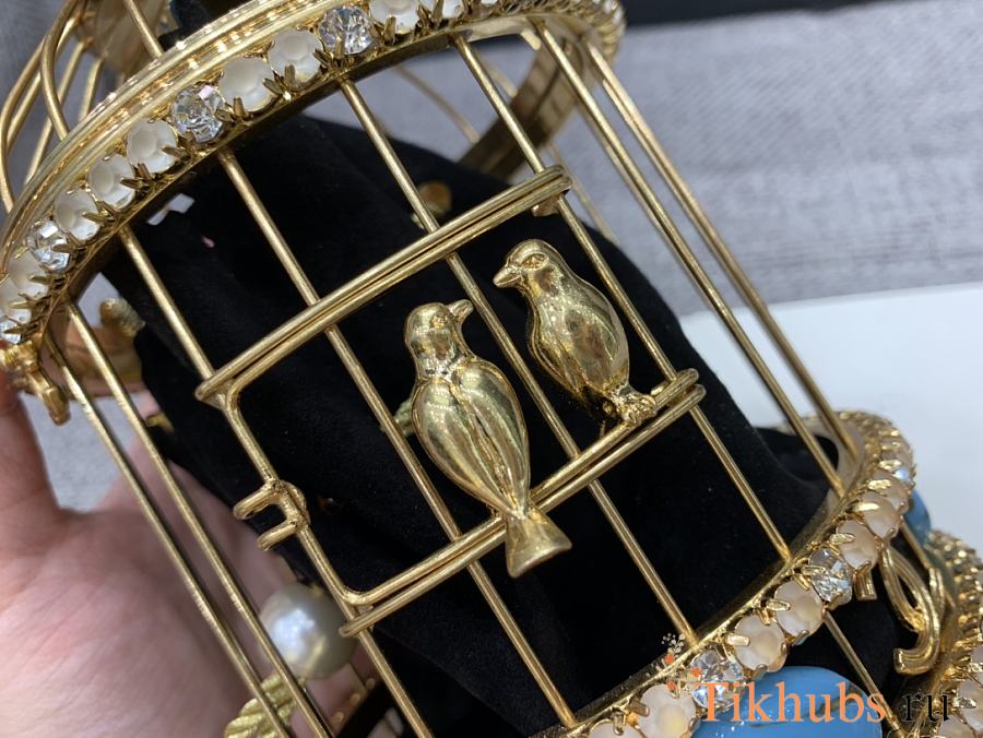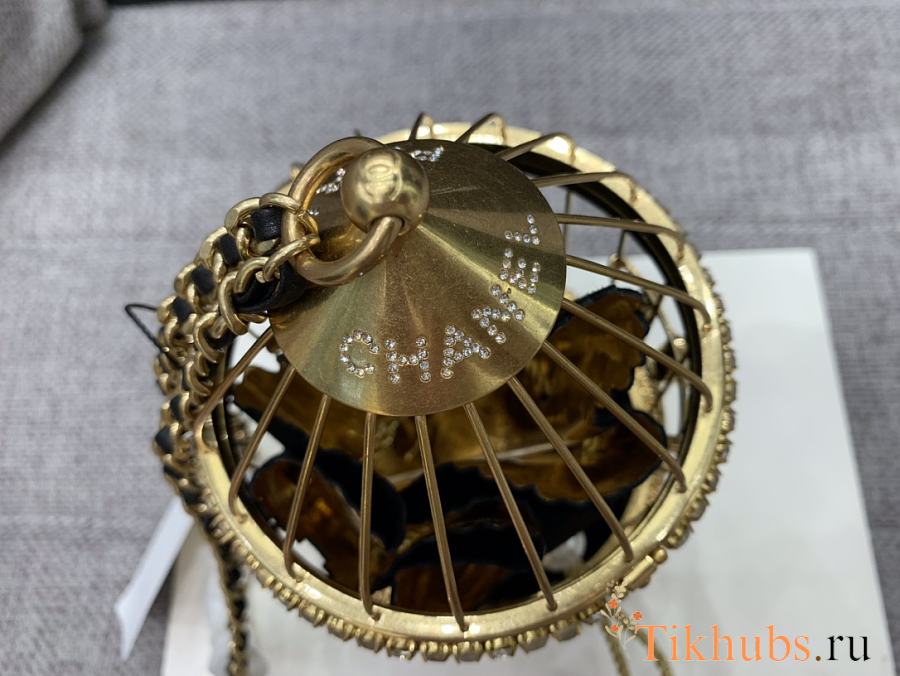 Chanel Gold Lambskin Strass Enamel Bird Cage 20x12x12cm