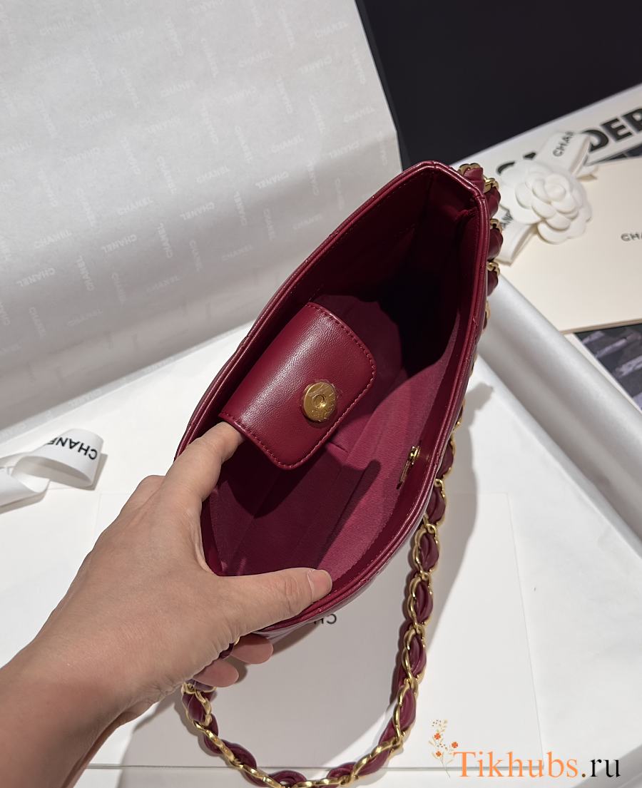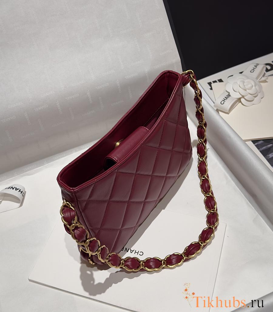 Chanel Hobo Bag Red Lambskin 24x17x5cm