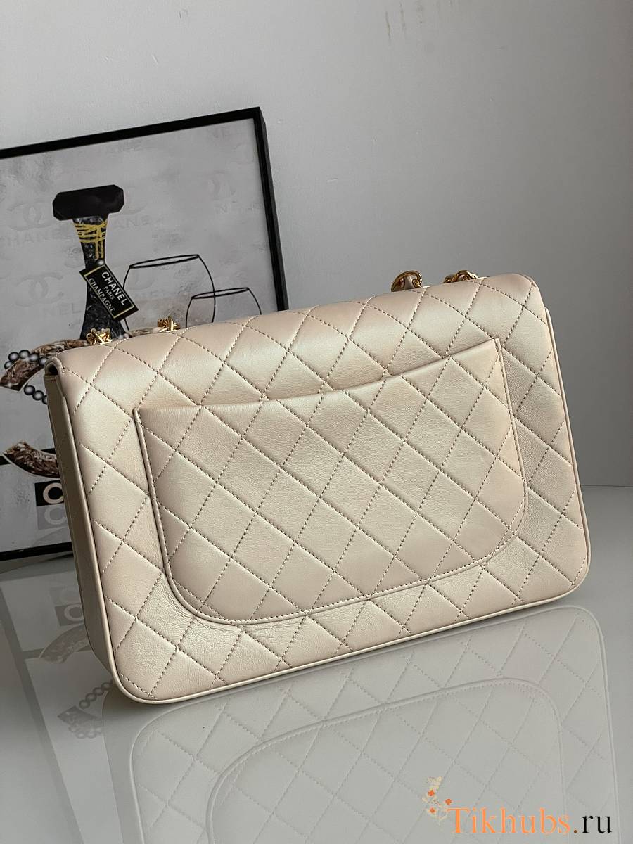 Chanel Jumbo Flap Bag Beige Lambskin Gold 30x21x8cm