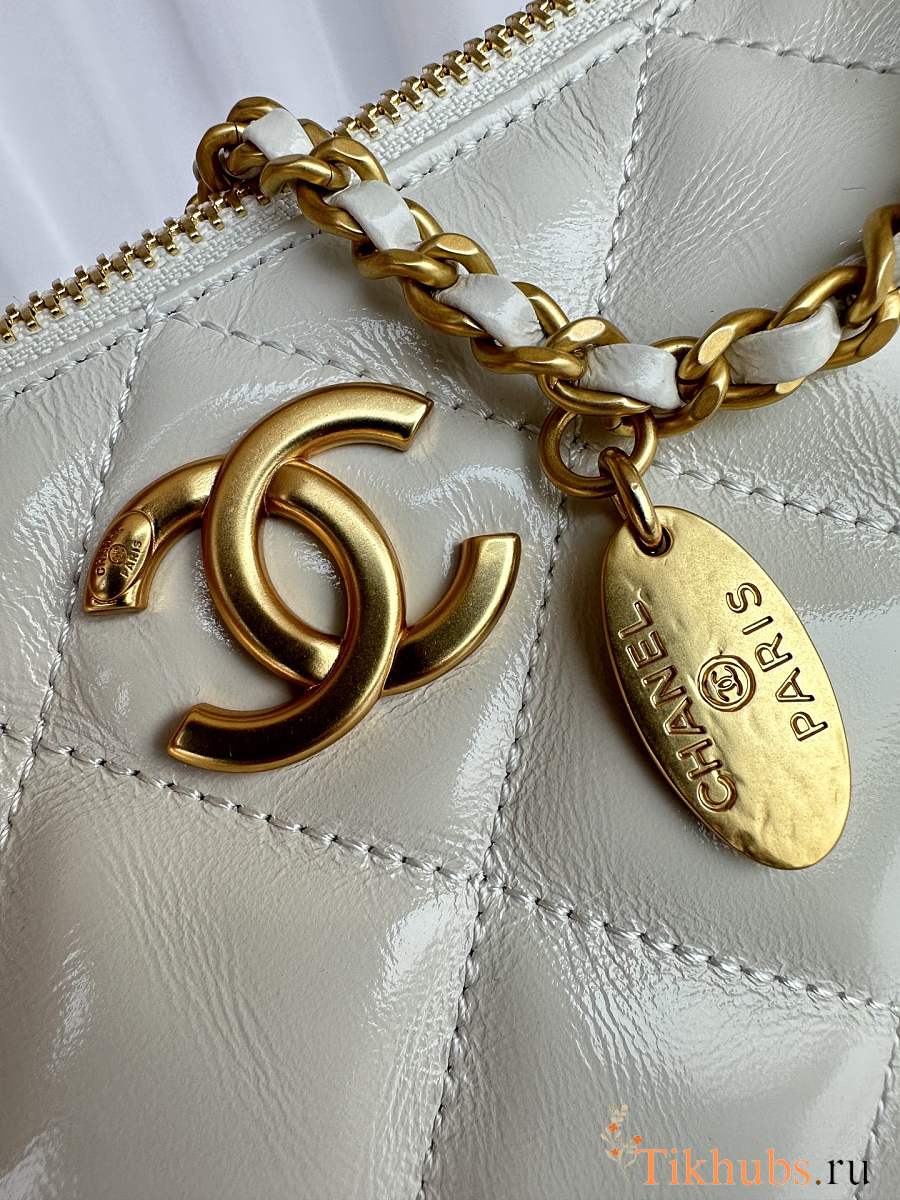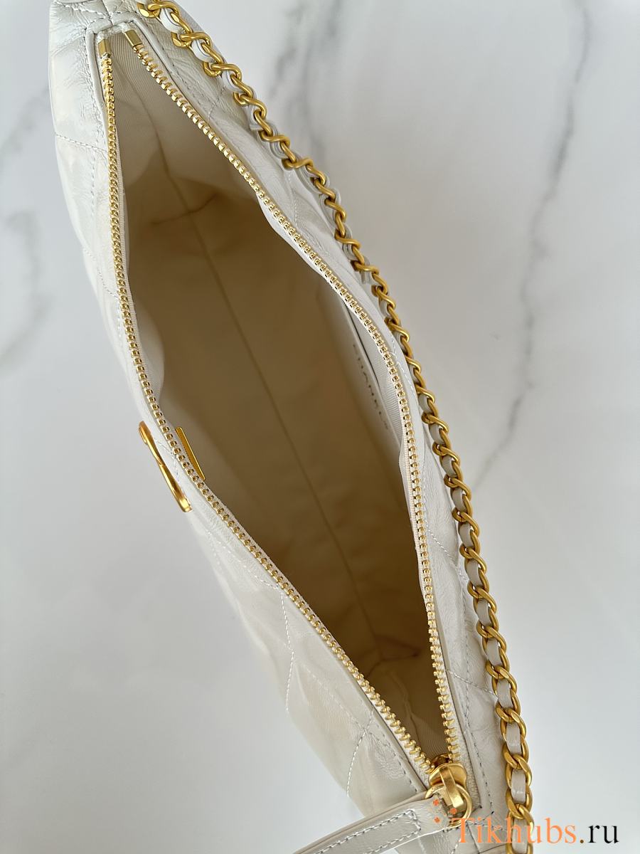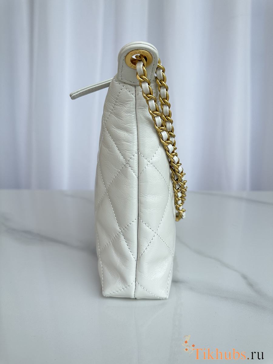 Chanel Large Hobo Bag Lambskin Gold White 32x20x6cm