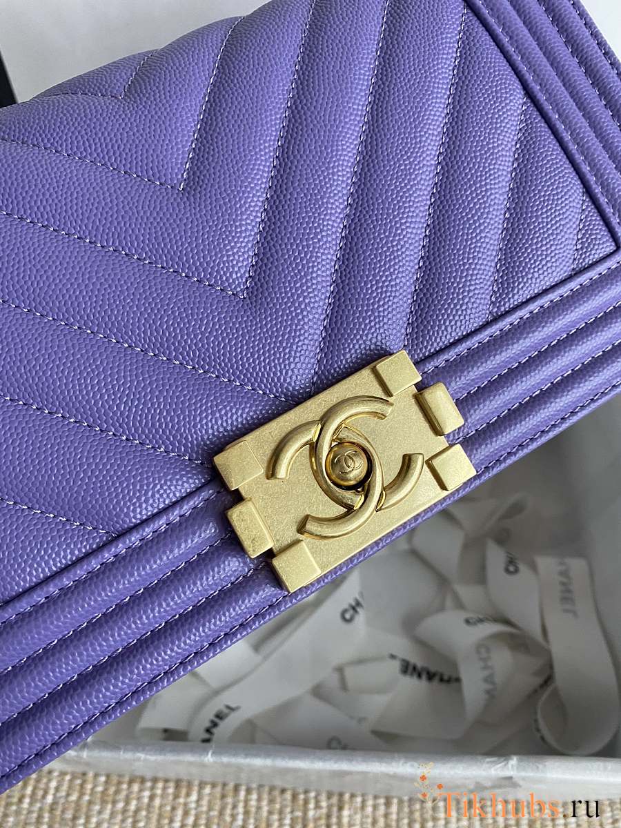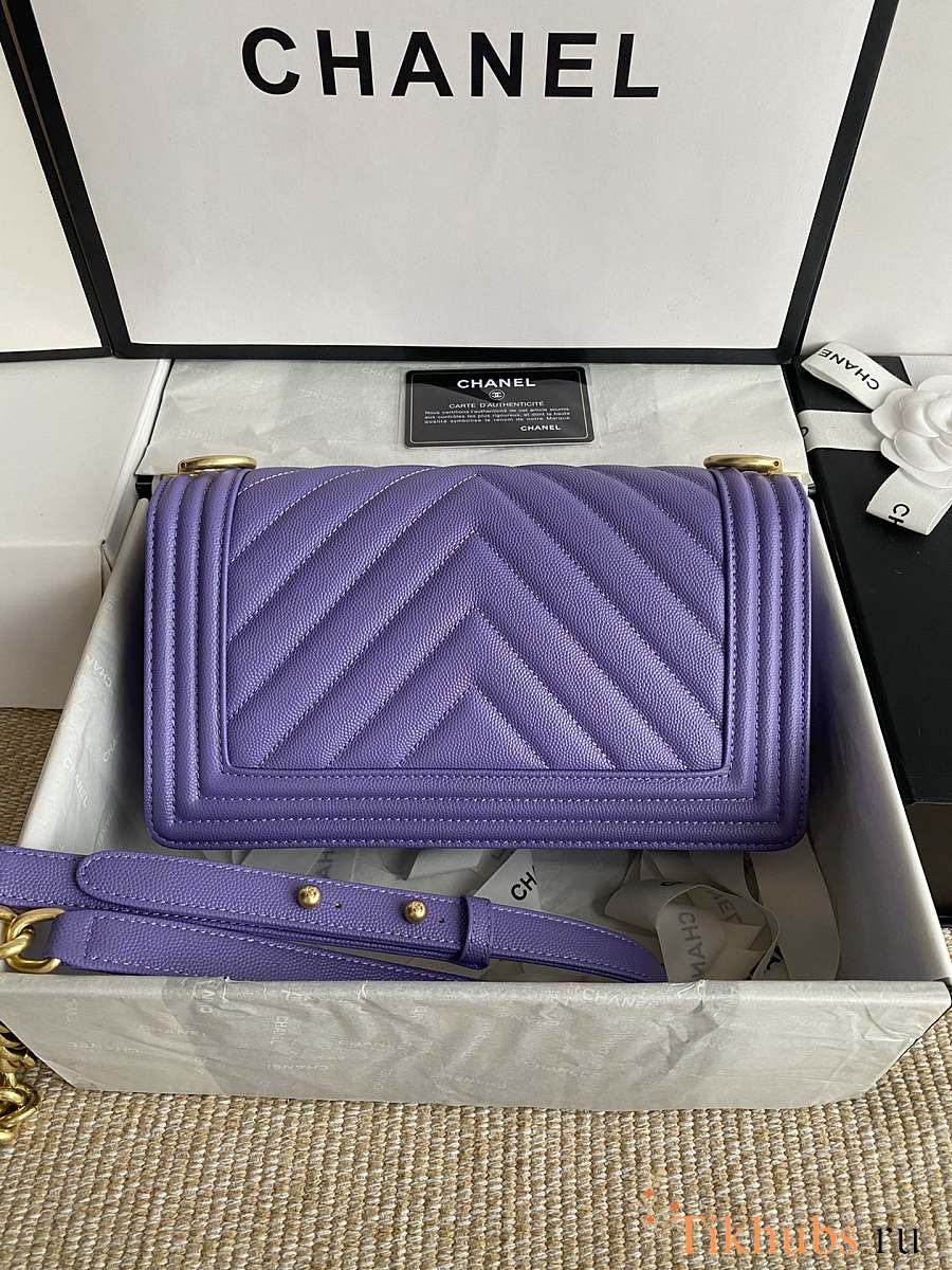 Chanel Leboy Bag Purple Caviar Gold Chevron 25cm