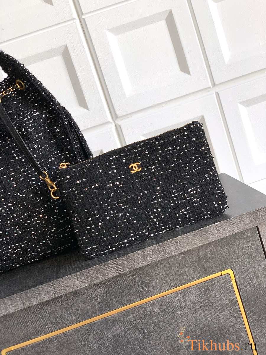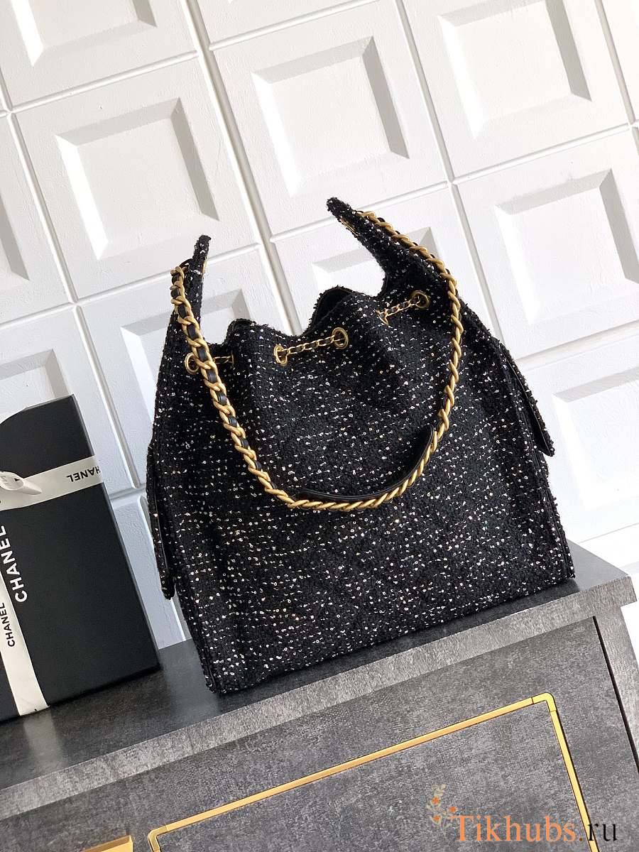 Chanel Medium 25C Hobo Bag Black Tweed 40x30x15cm