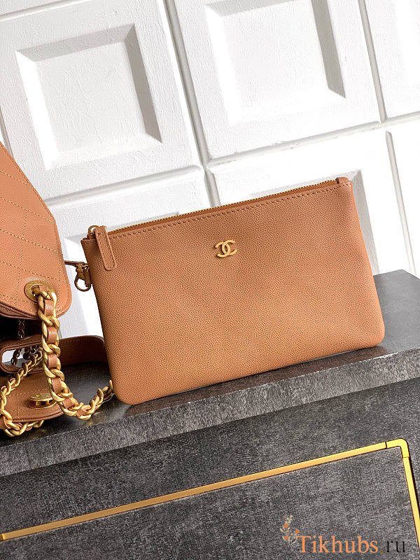 LV Double Zip Pochette Monogram Embossing Brown M69203 Size 20 x 12.5 x 3 cm