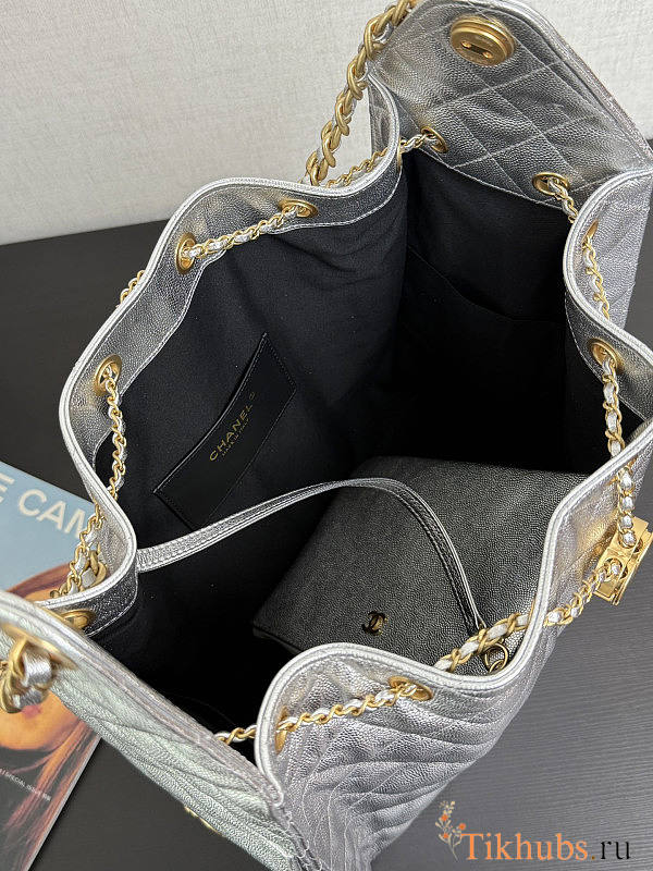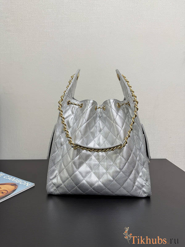 Chanel Medium 25C Hobo Bag Silver Caviar Gold 40x30x15cm