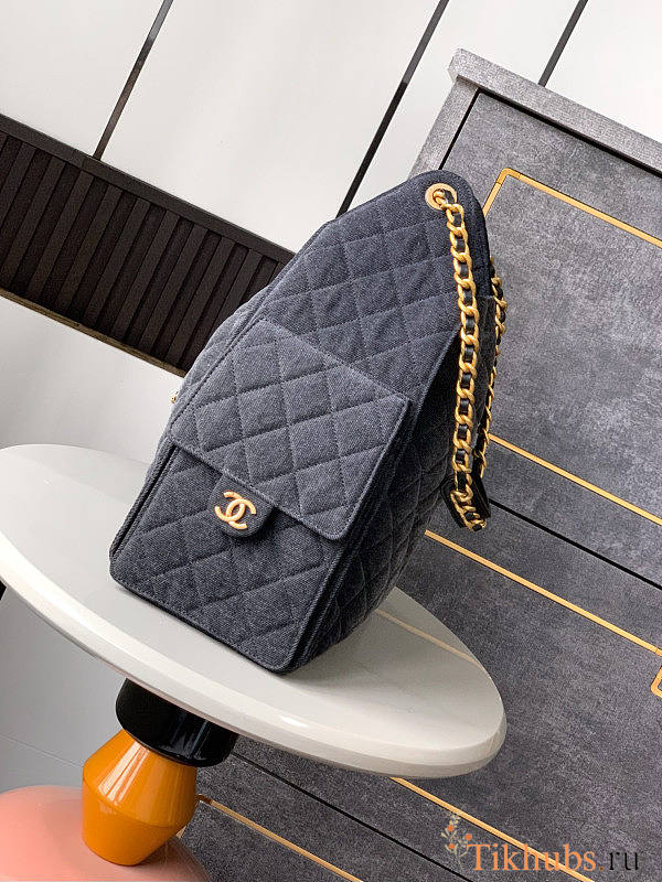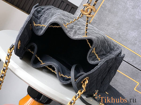 Chanel Medium Cruise 25C Bag Black Denim Hobo 40x30x15cm