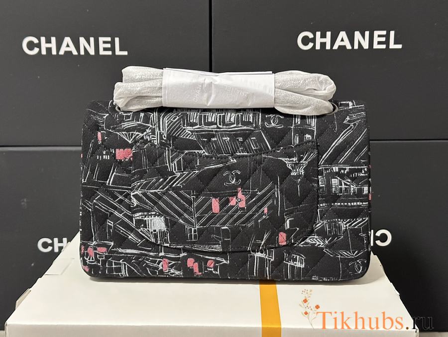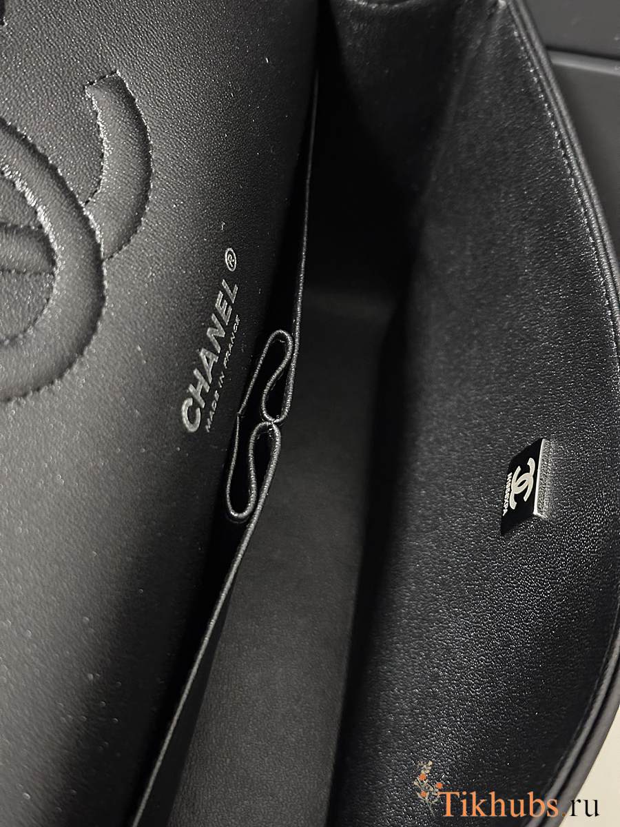 Chanel Medium Evening Flap Bag Black Fabric Silver 25cm
