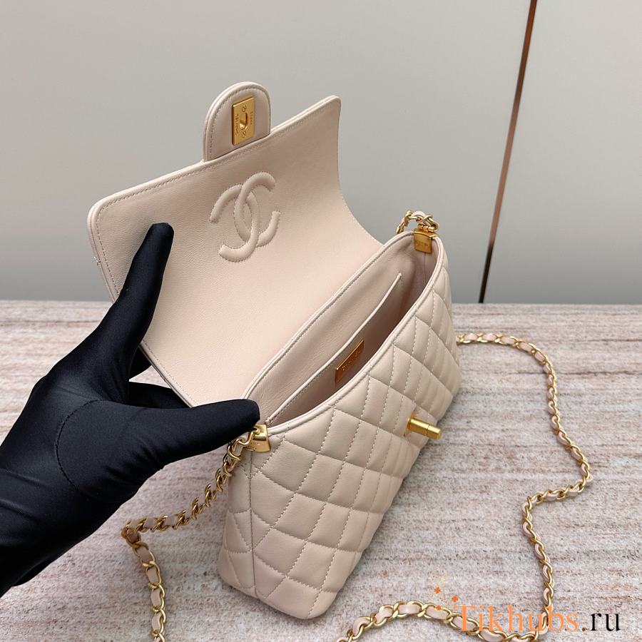 Chanel Medium Flap Bag Beige Lambskin Gold 27x16x7.5cm