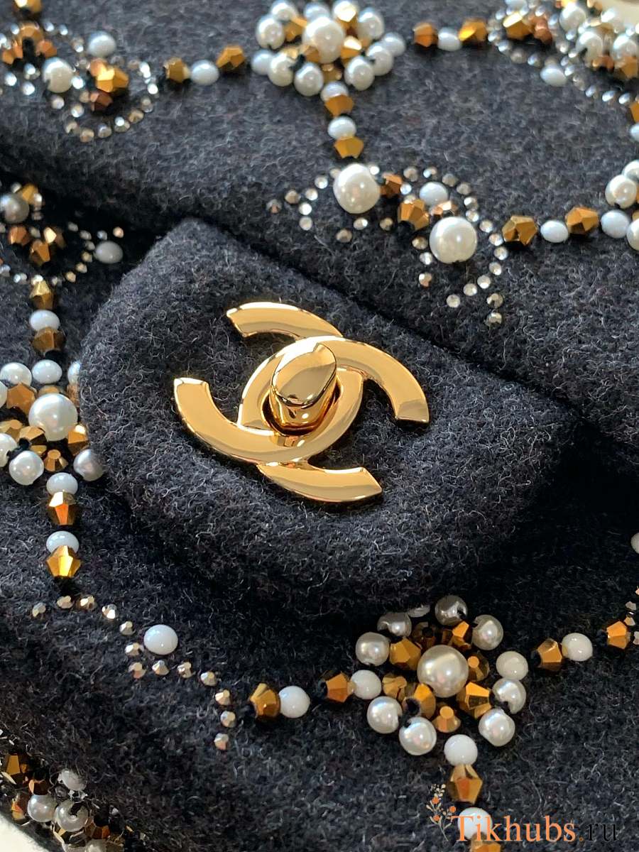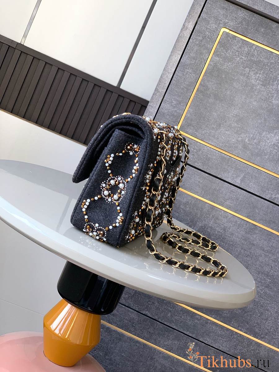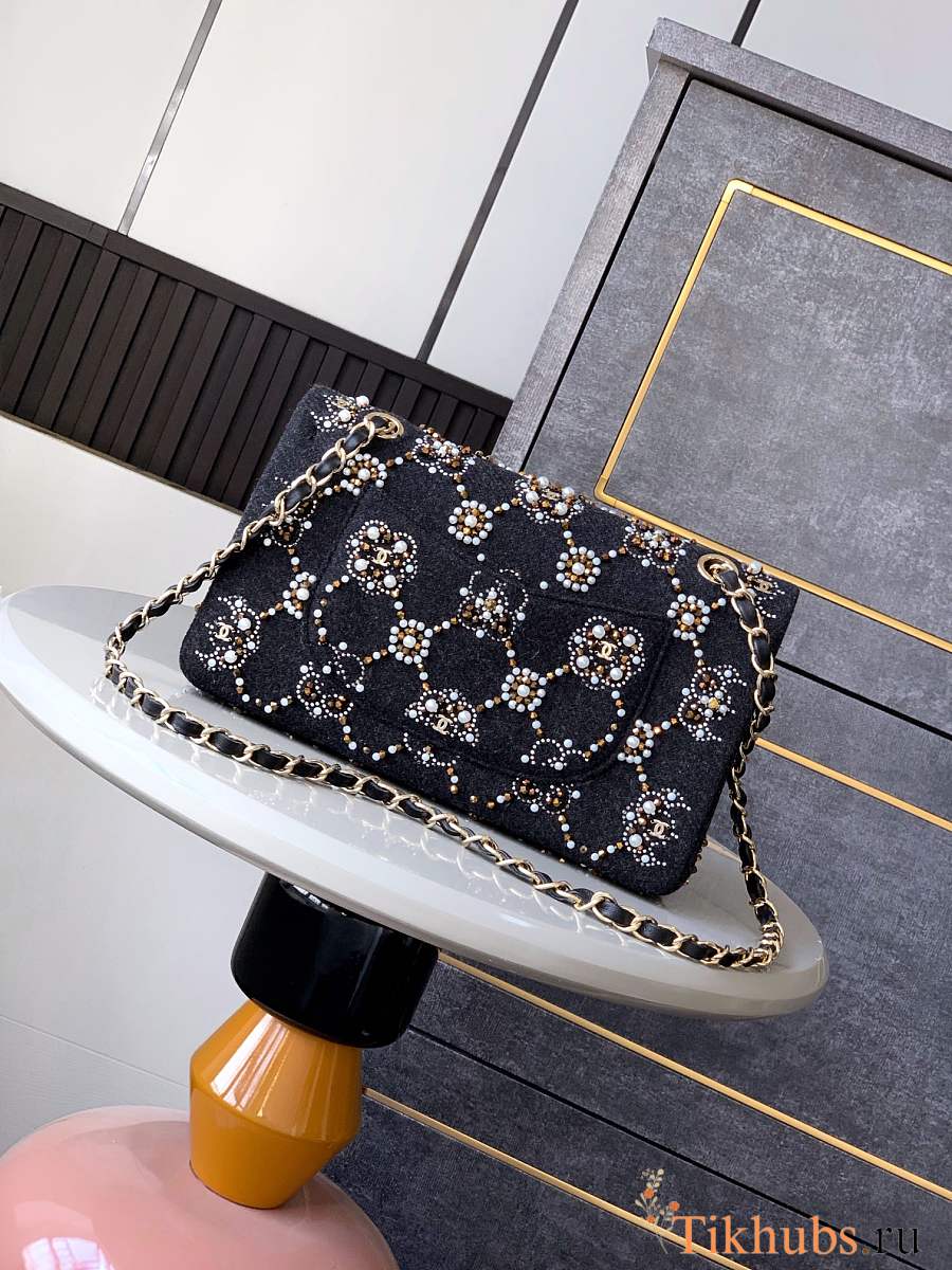 Chanel Medium Flap Bag Black Denim Gold 25cm