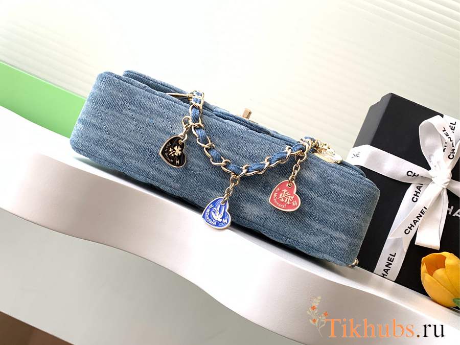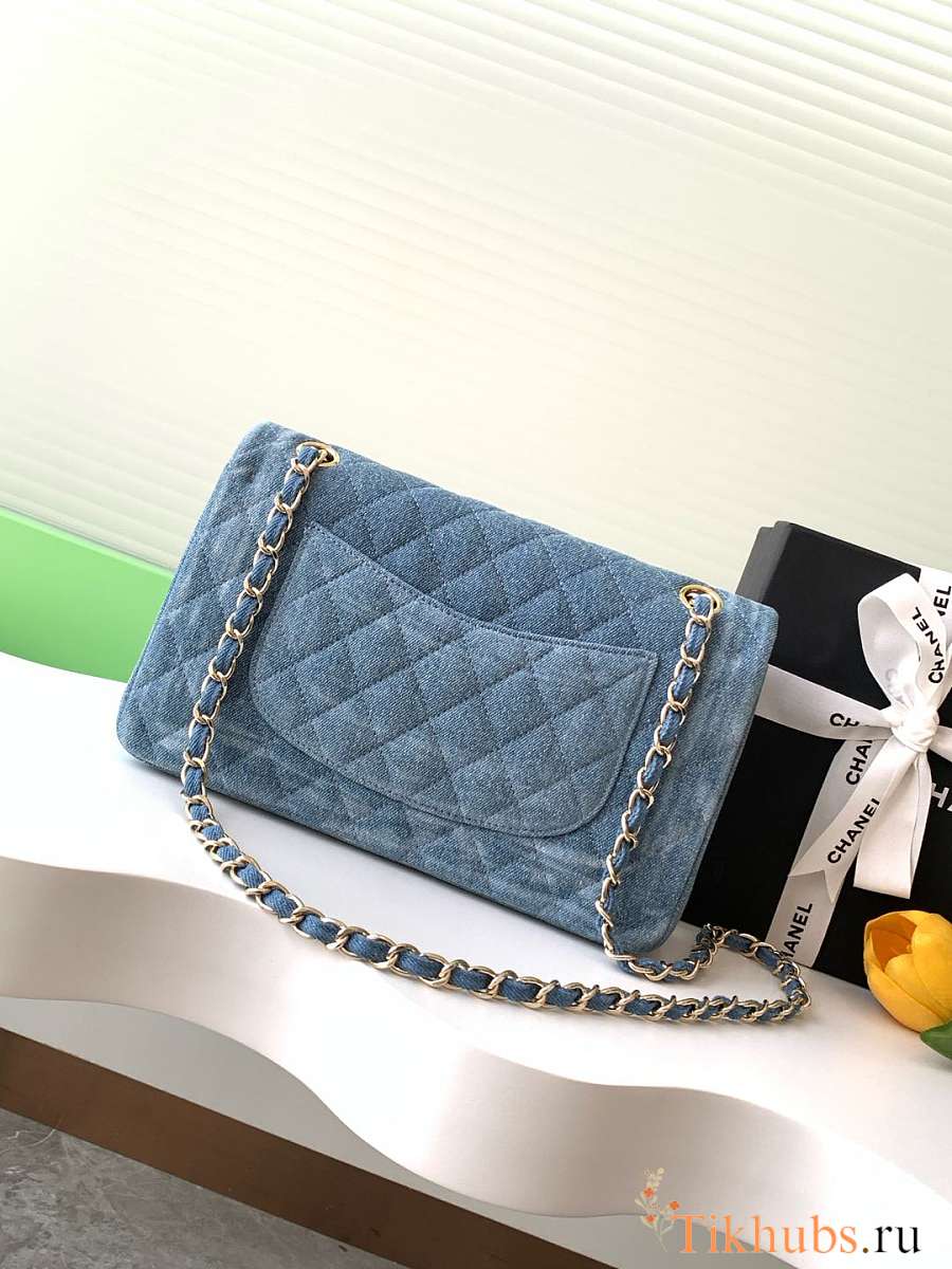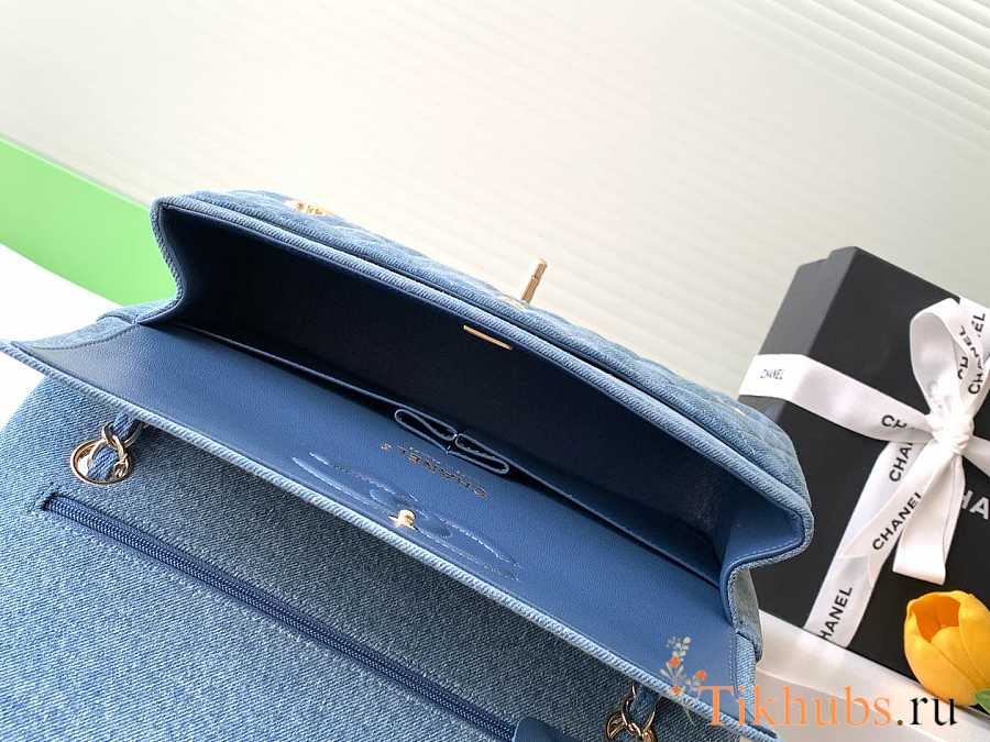Chanel Medium Flap Bag Denim Blue Gold 25cm