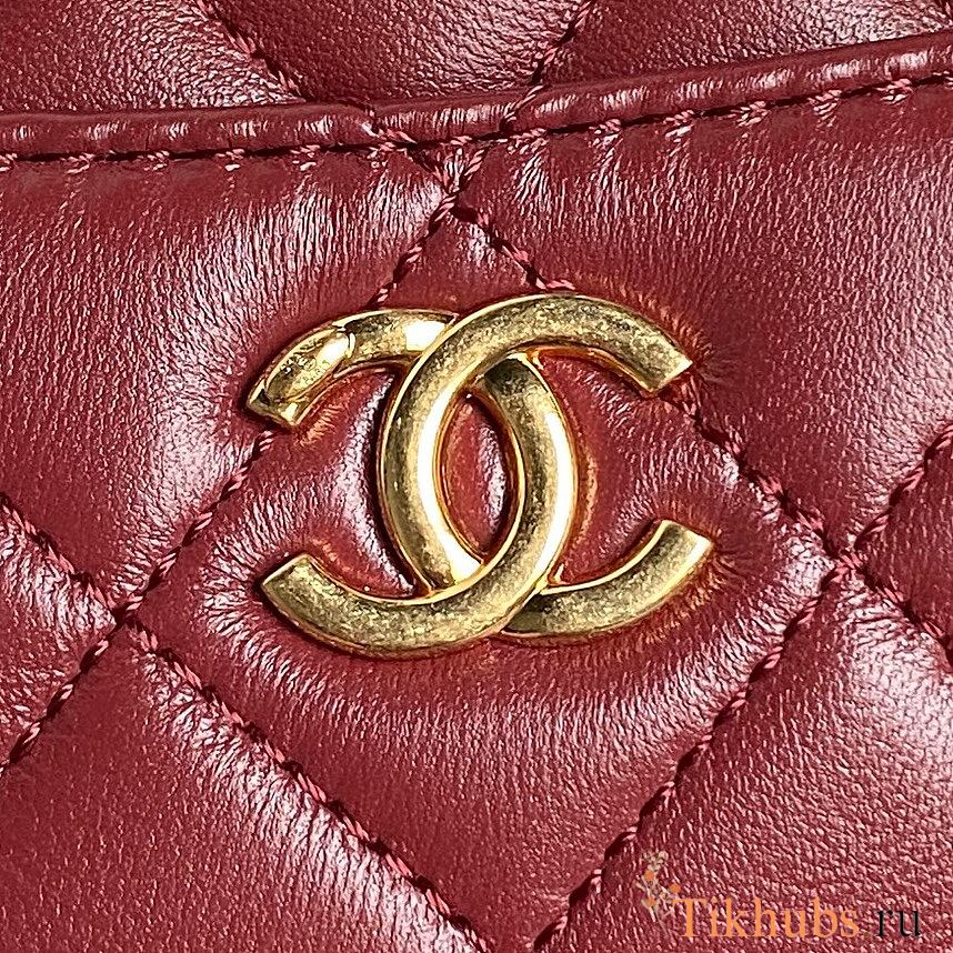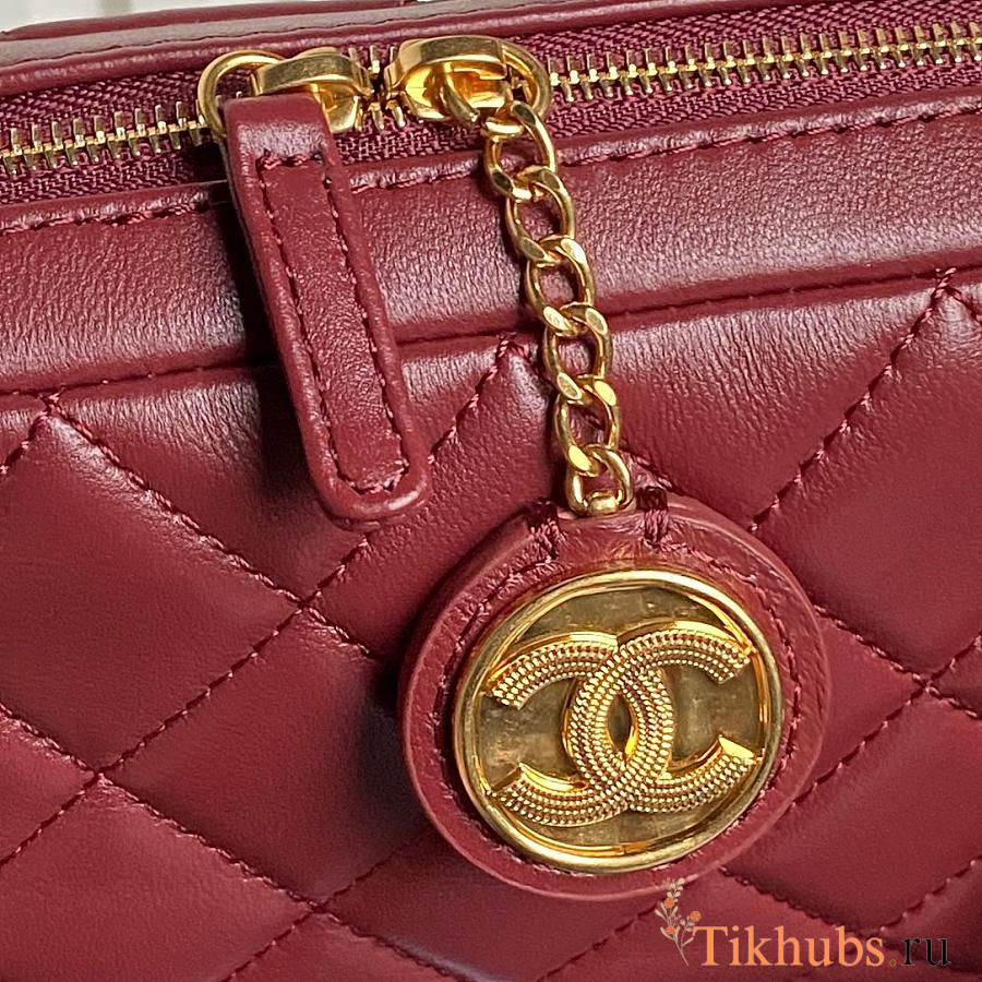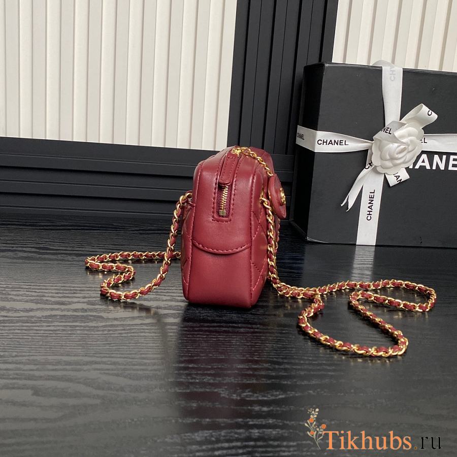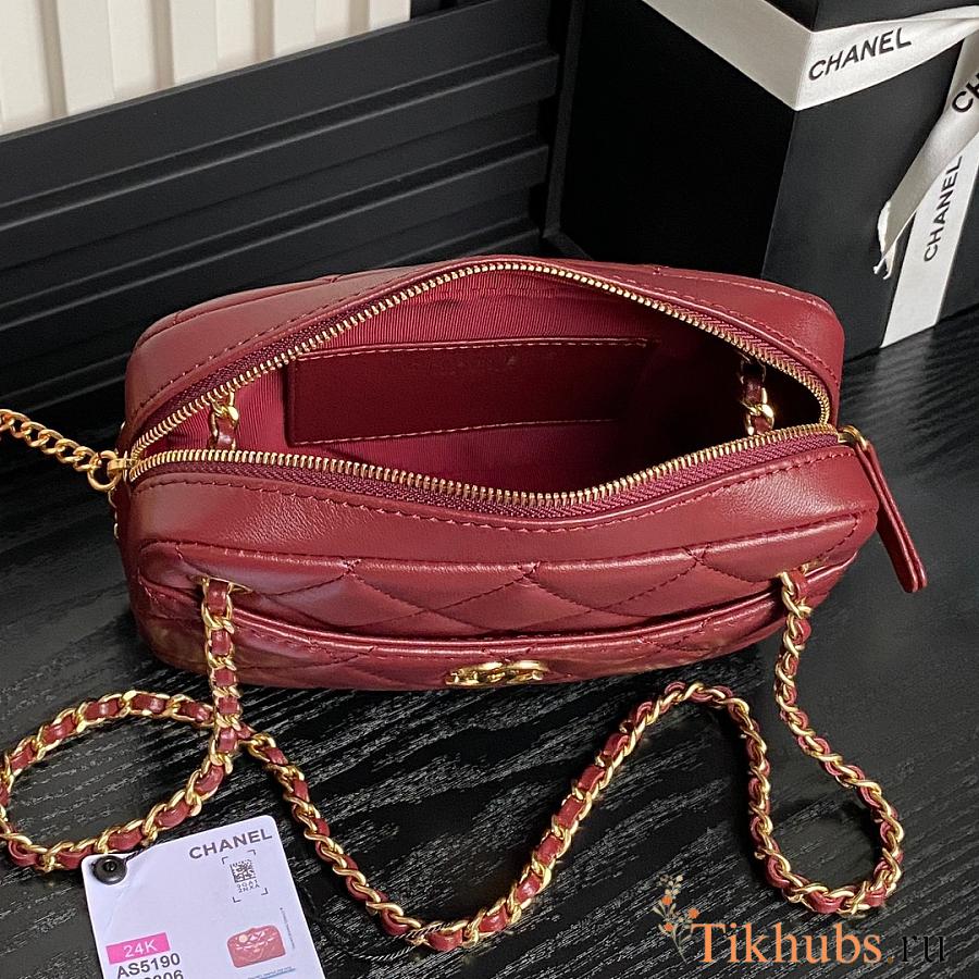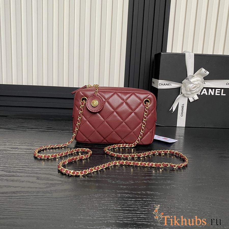 Chanel Mini Camera Case Lambskin Gold Burgundy 18x12x7cm