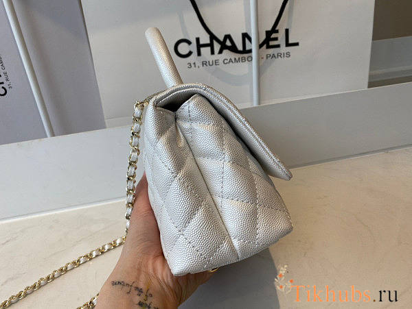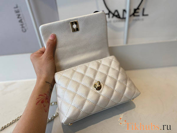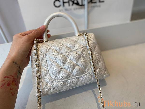 Chanel Mini Coco Handle White Caviar 19x13x9cm