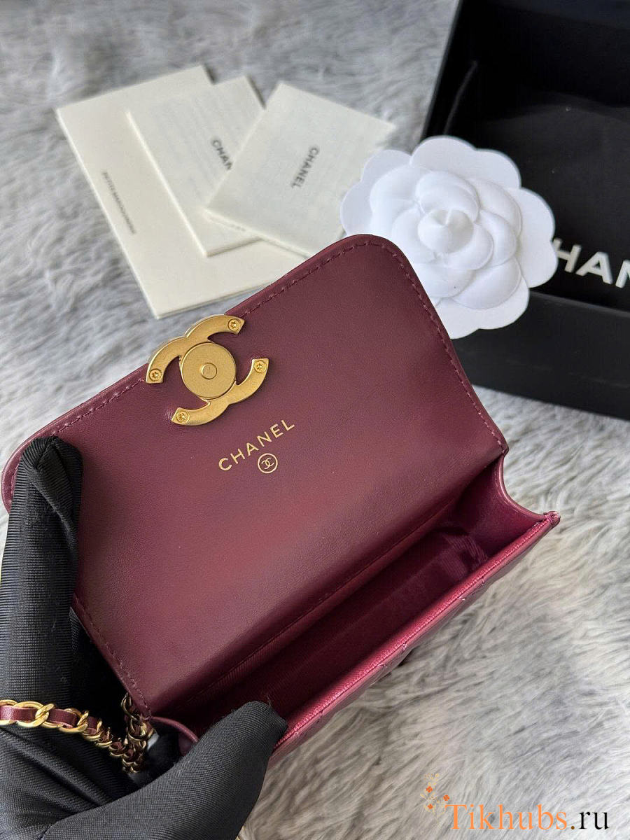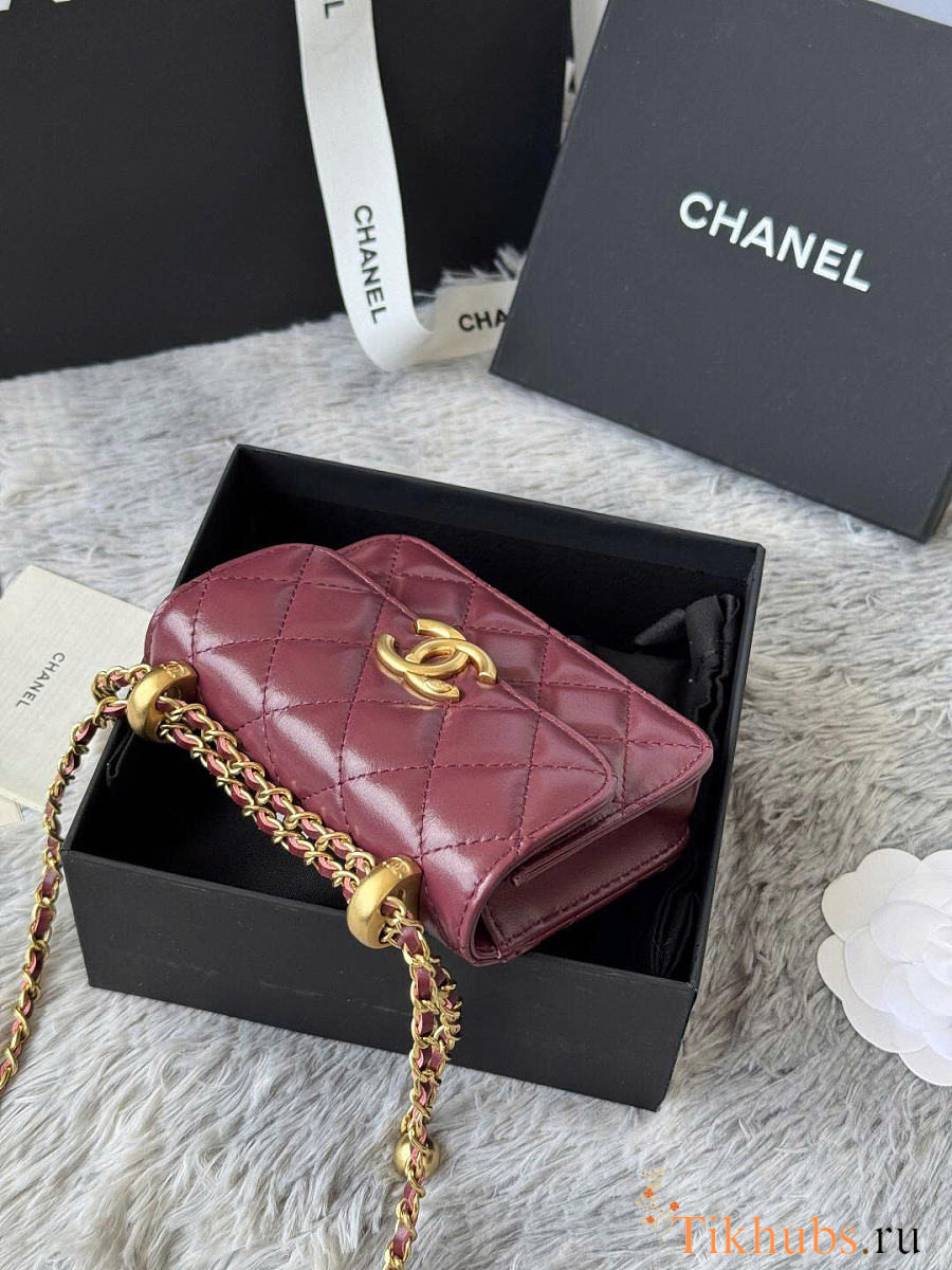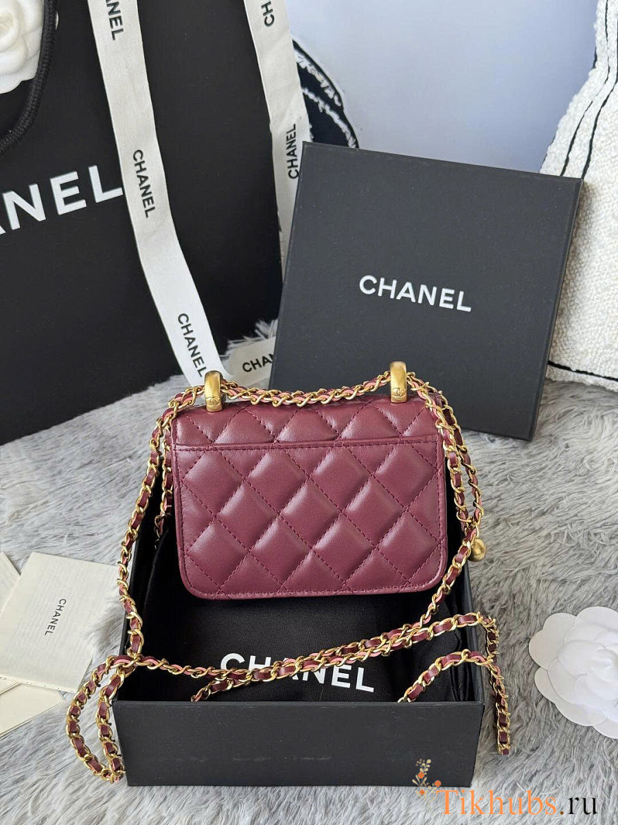 Chanel Mini Flap Bag Burgundy Lambskin Gold 12cm