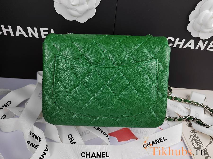 Chanel Mini Flap Bag Green Caviar Silver 17cm