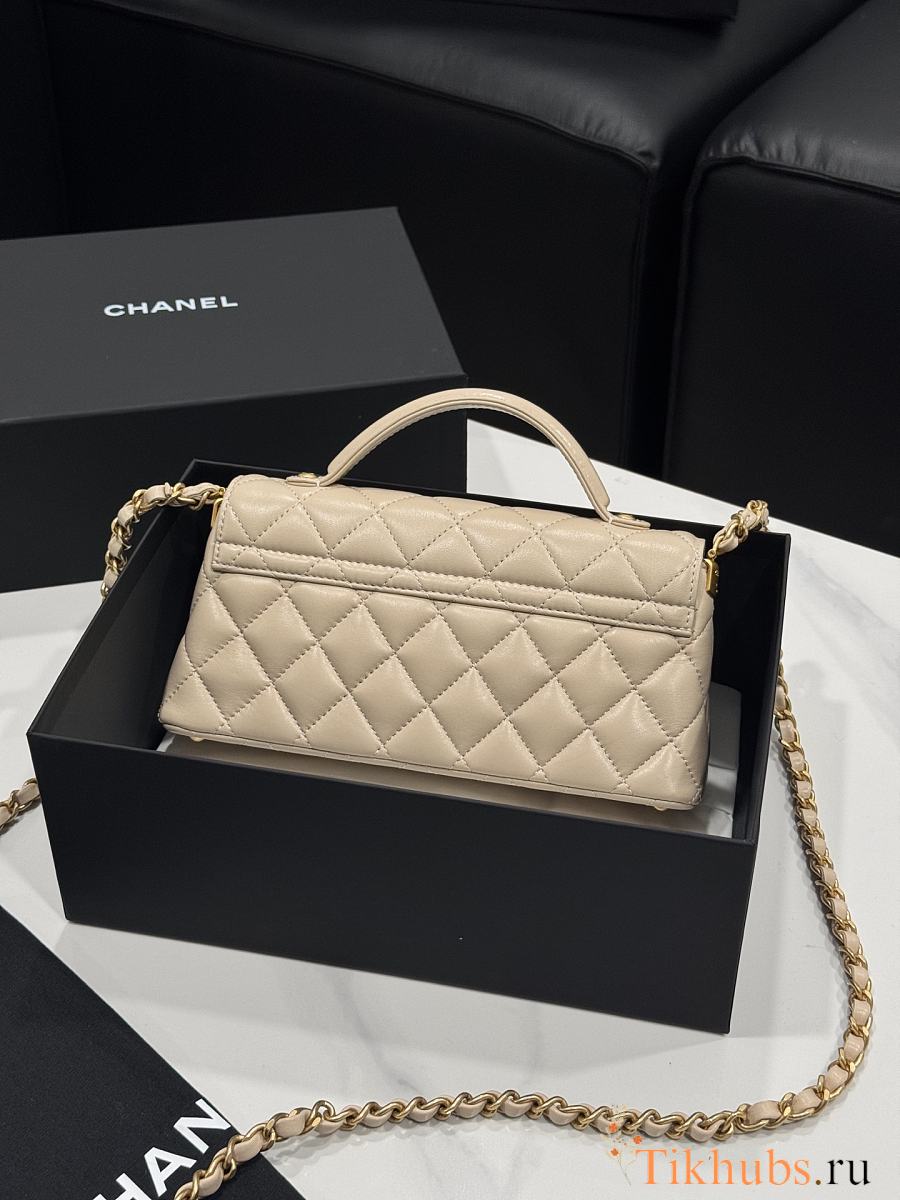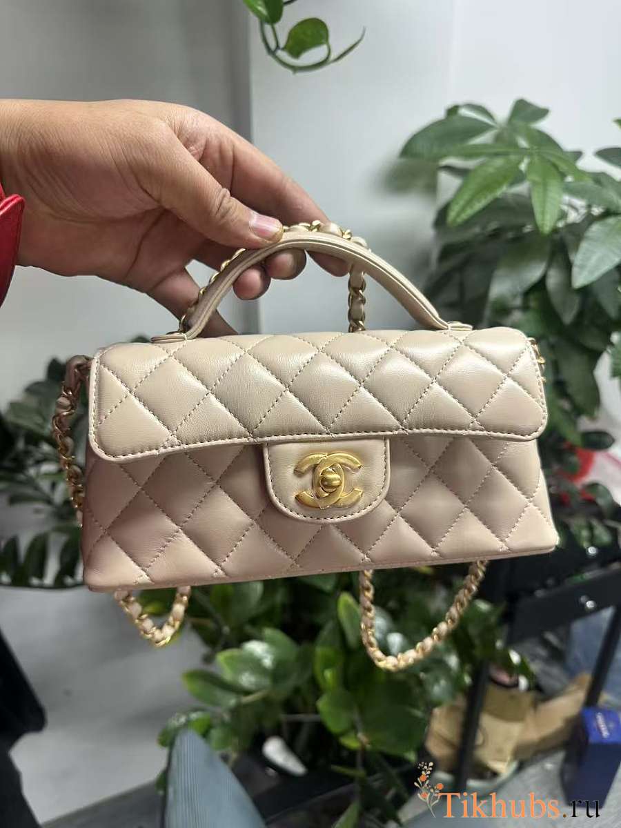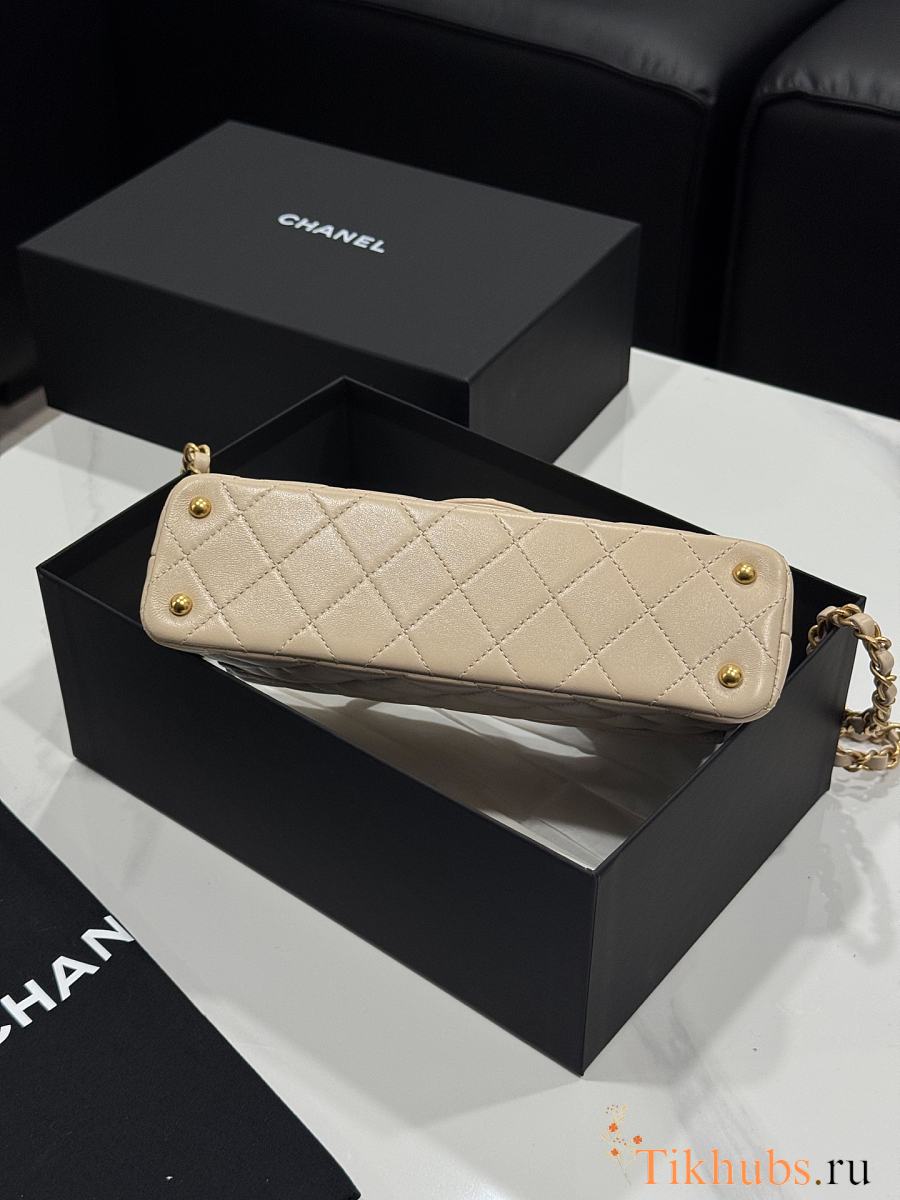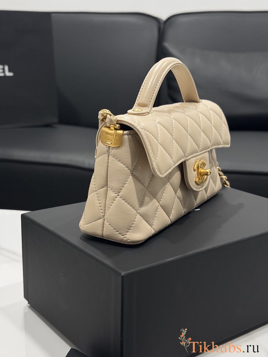 Chanel Mini Flap Bag Handle Lambskin Gold Beige 20x14x5.5cm