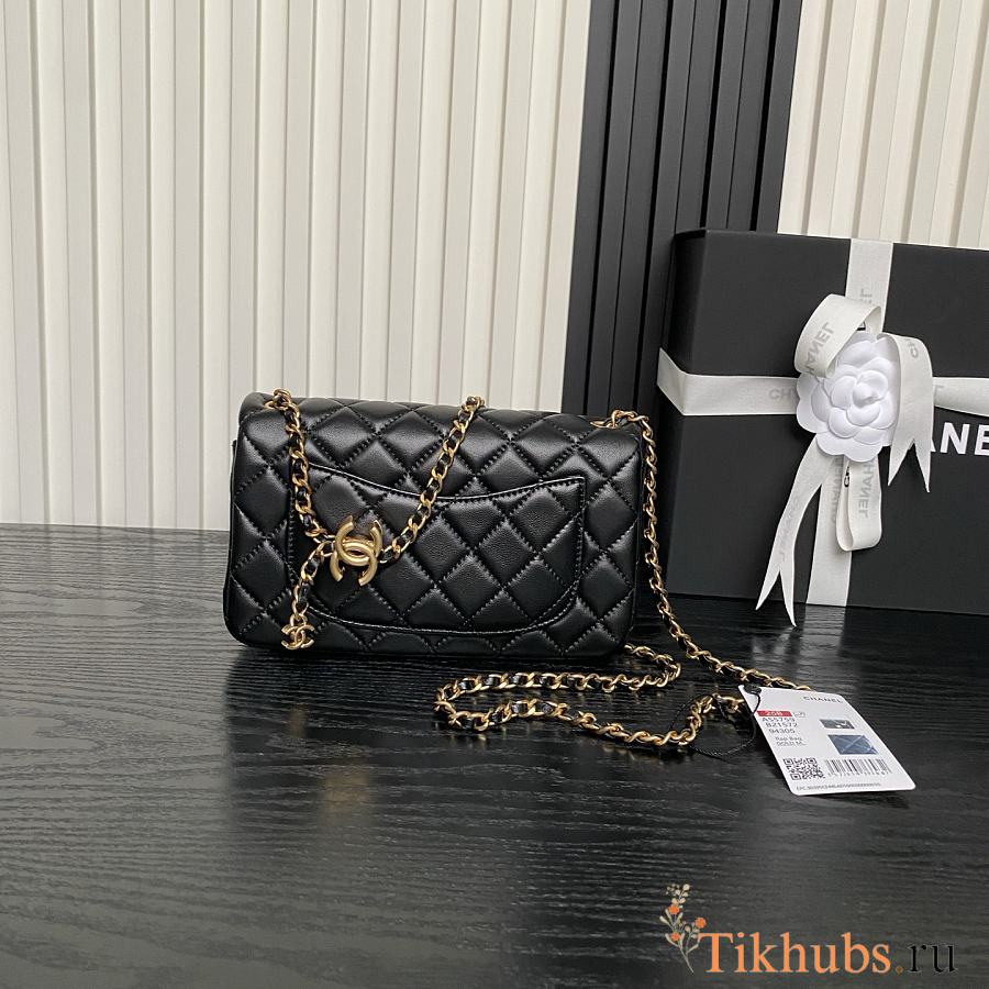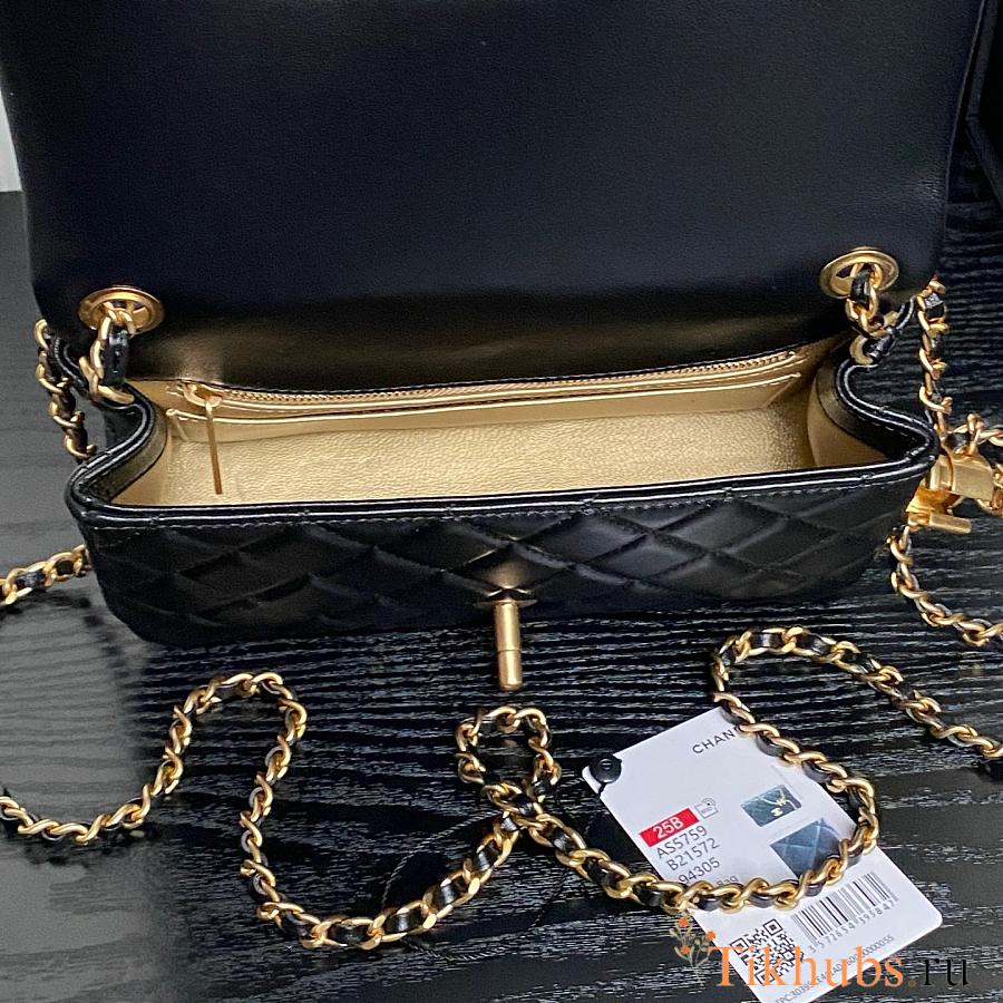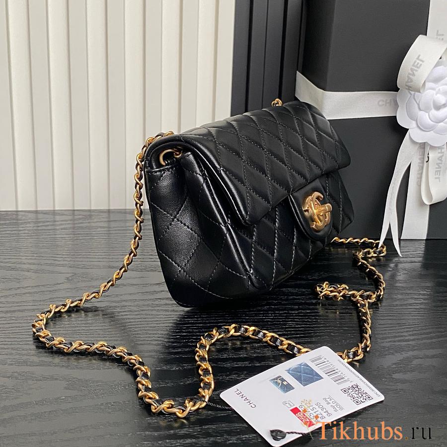 Chanel Mini Flap Bag Lambskin Gold Black 20x13x7cm
