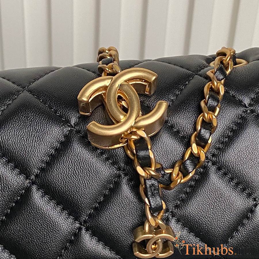 Chanel Flap Bag Top Handle Black Lambskin 24x14.5x6.5cm
