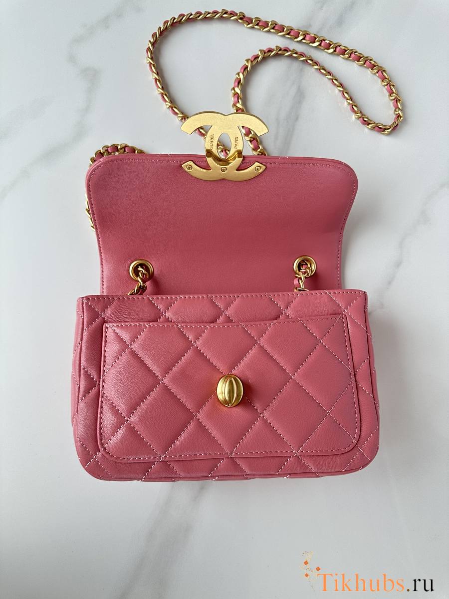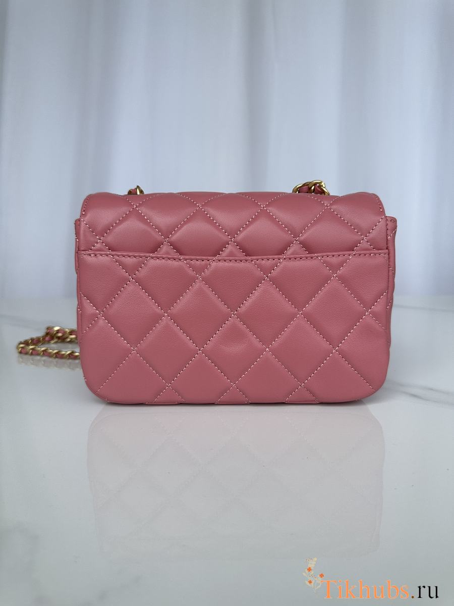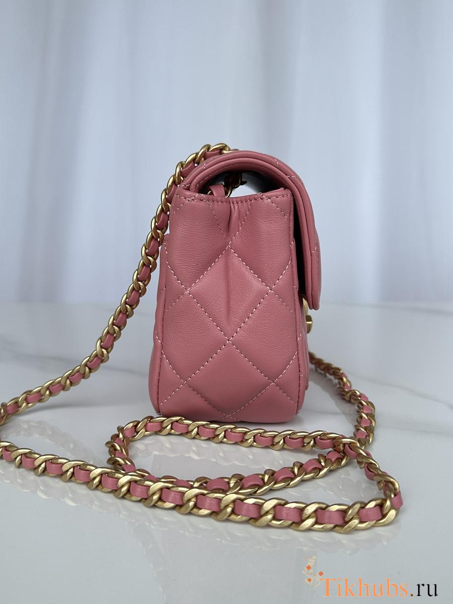 Chanel Mini Flap Bag Lambskin Gold Pink 19x13.5x7cm
