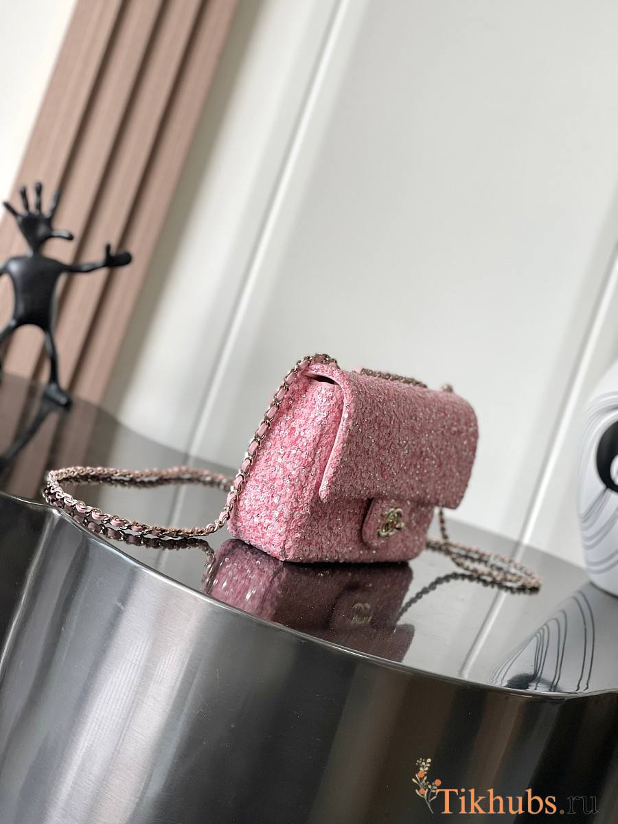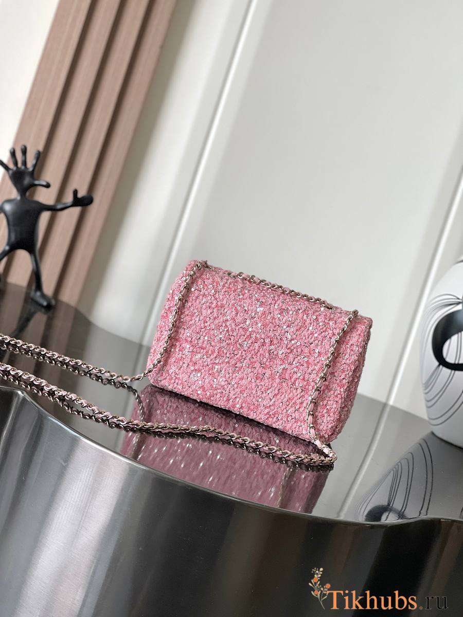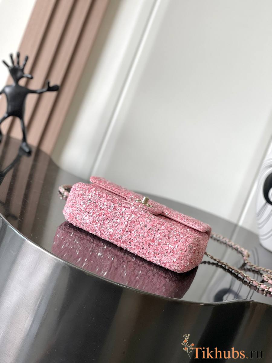 Chanel Mini Flap Bag Pink Sequins 20x15x7cm