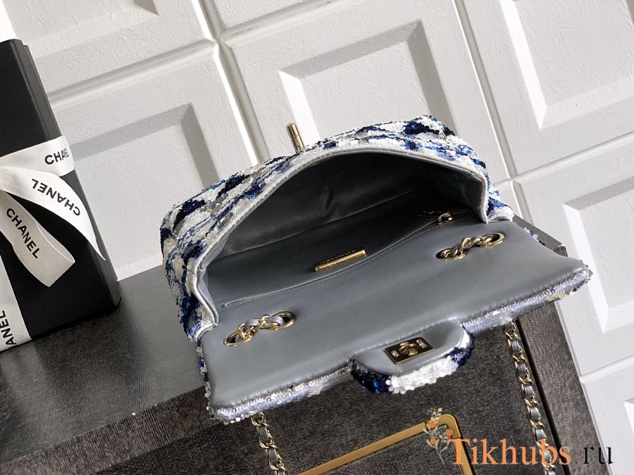 Chanel Mini Flap Bag Sequin Blue 20cm