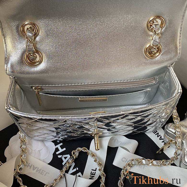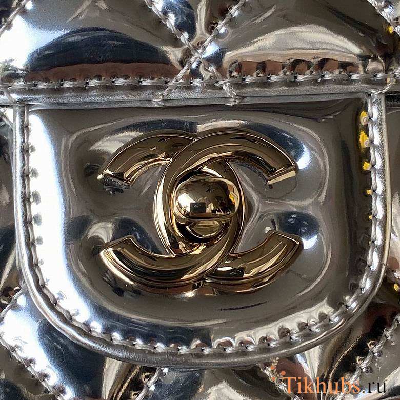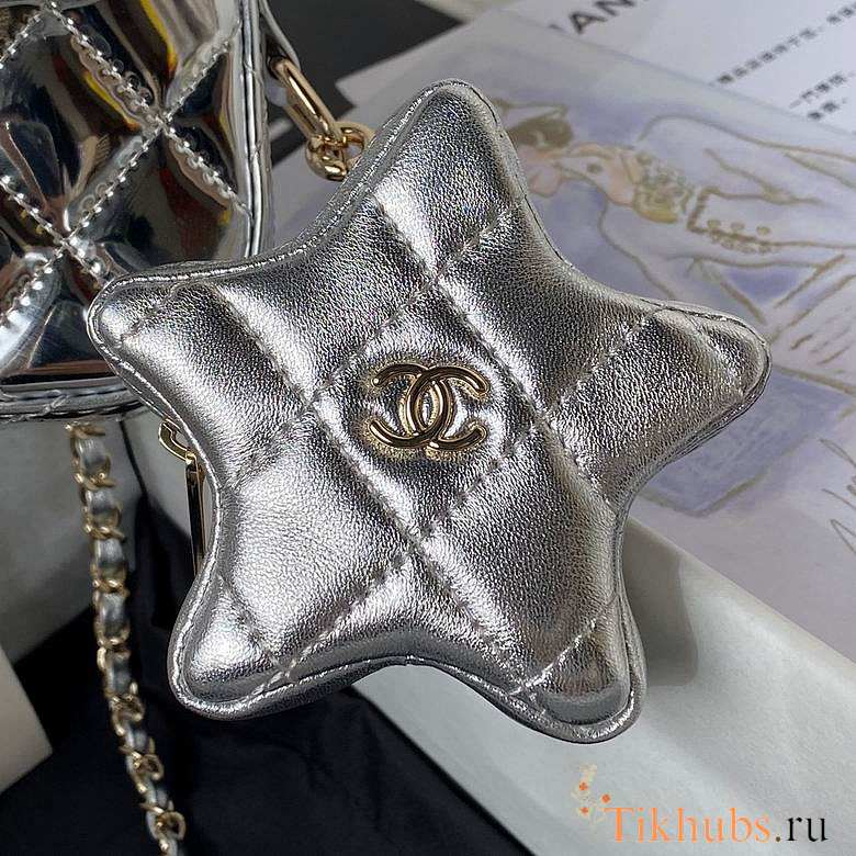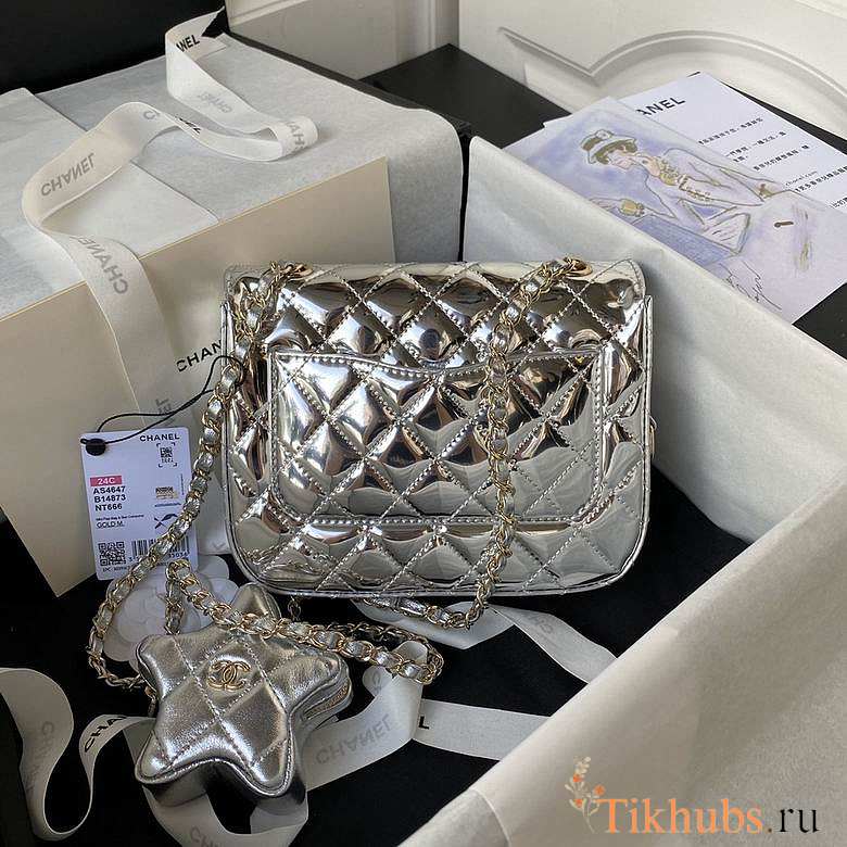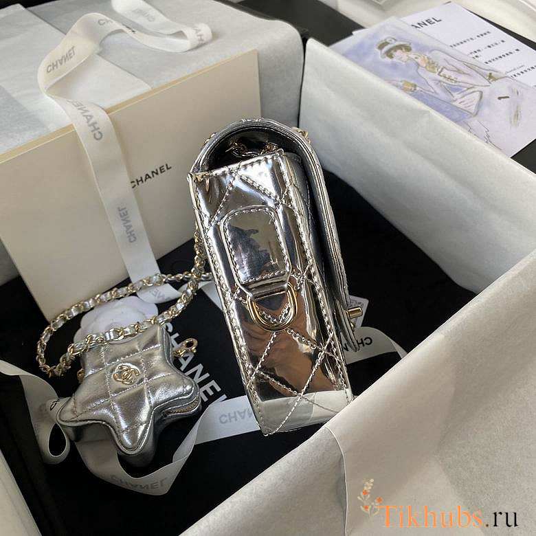 Chanel Mini Flap Bag & Star Coin Purse Mirror Silver 20x15x6.5cm