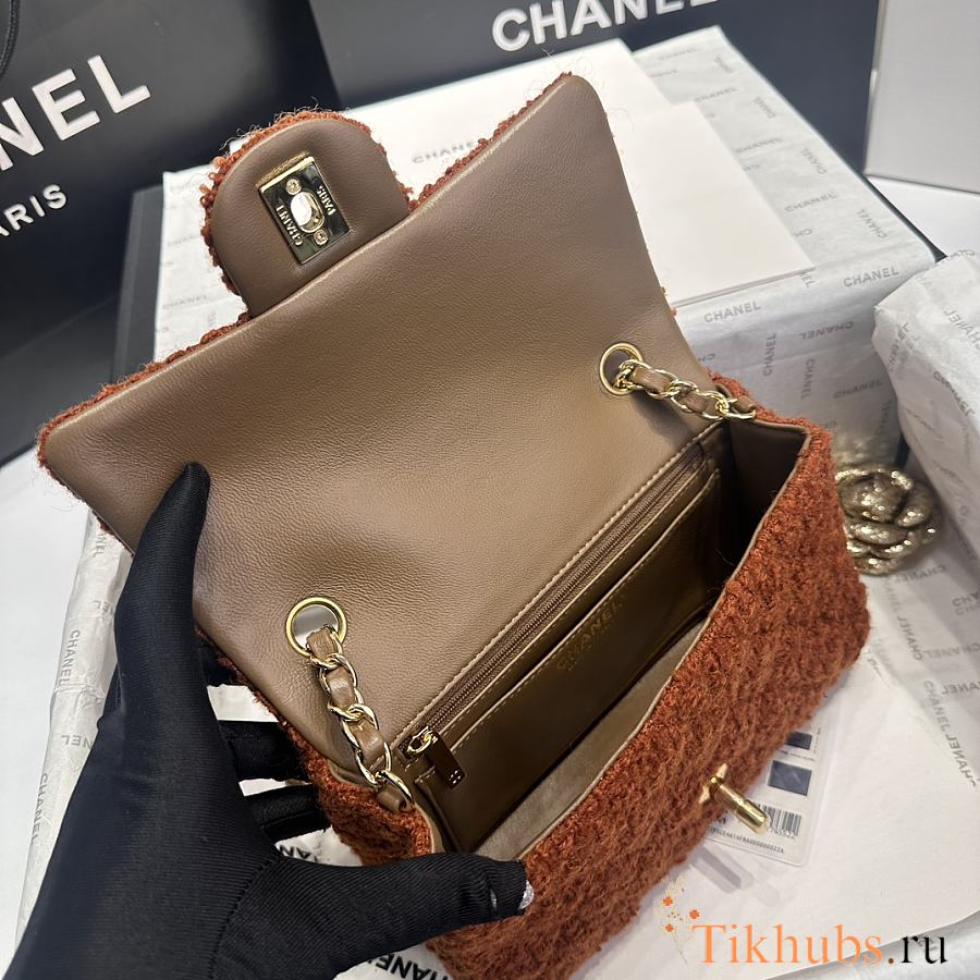 Chanel Mini Flap Bag Tweed Brown 20cm