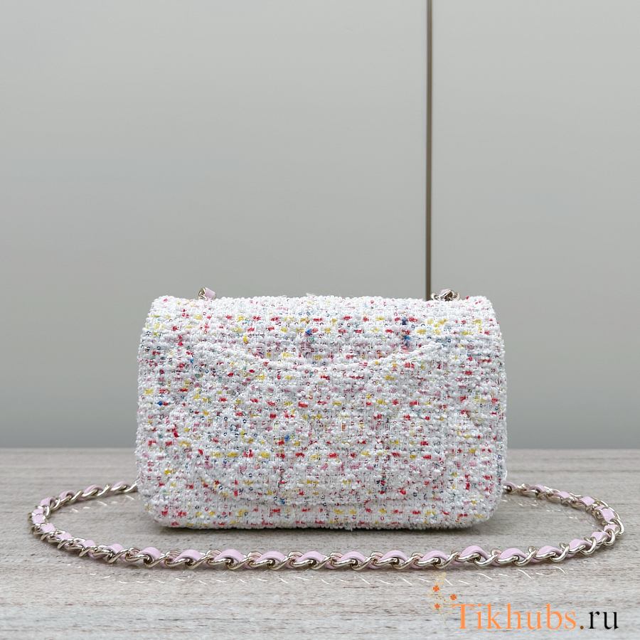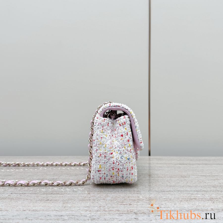Chanel Mini Flap Bag Tweed Gold White Blue Pink 20x13x7cm