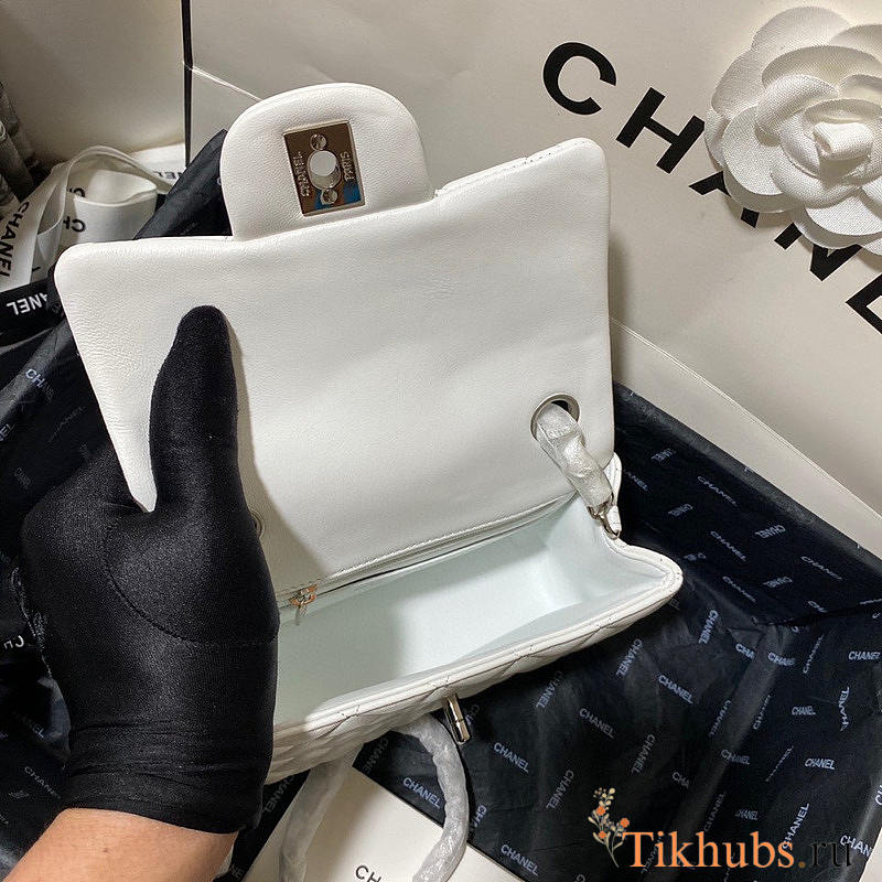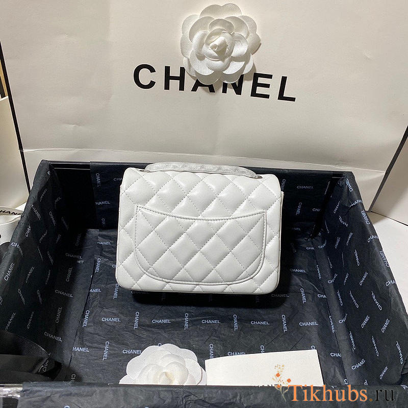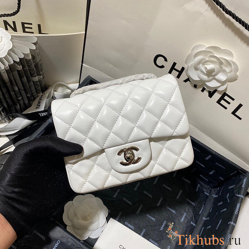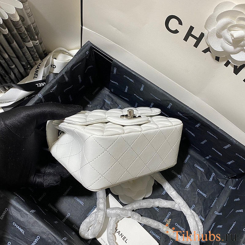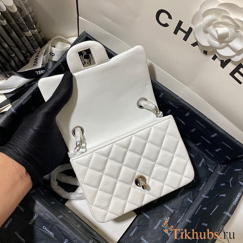 Chanel Mini Flap Bag White Silver Lambskin 17cm