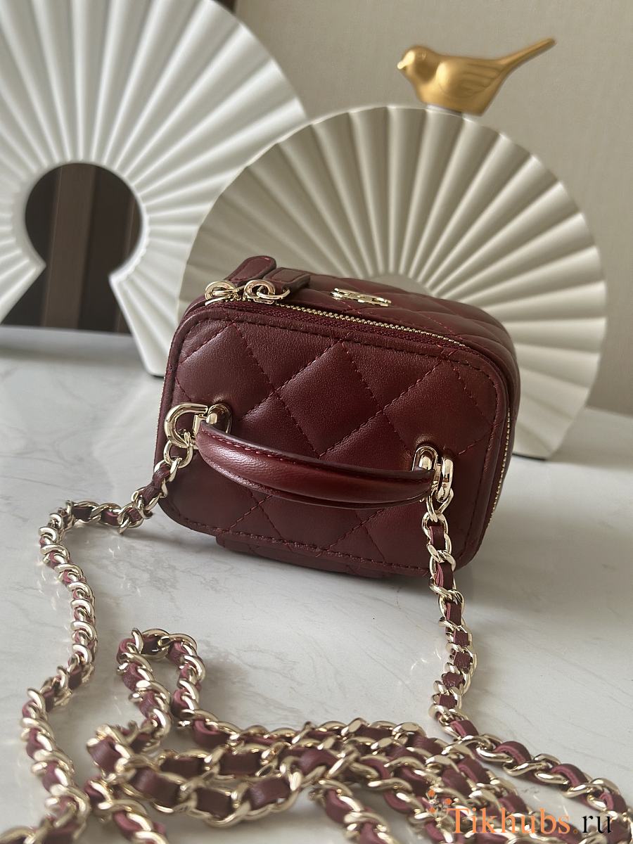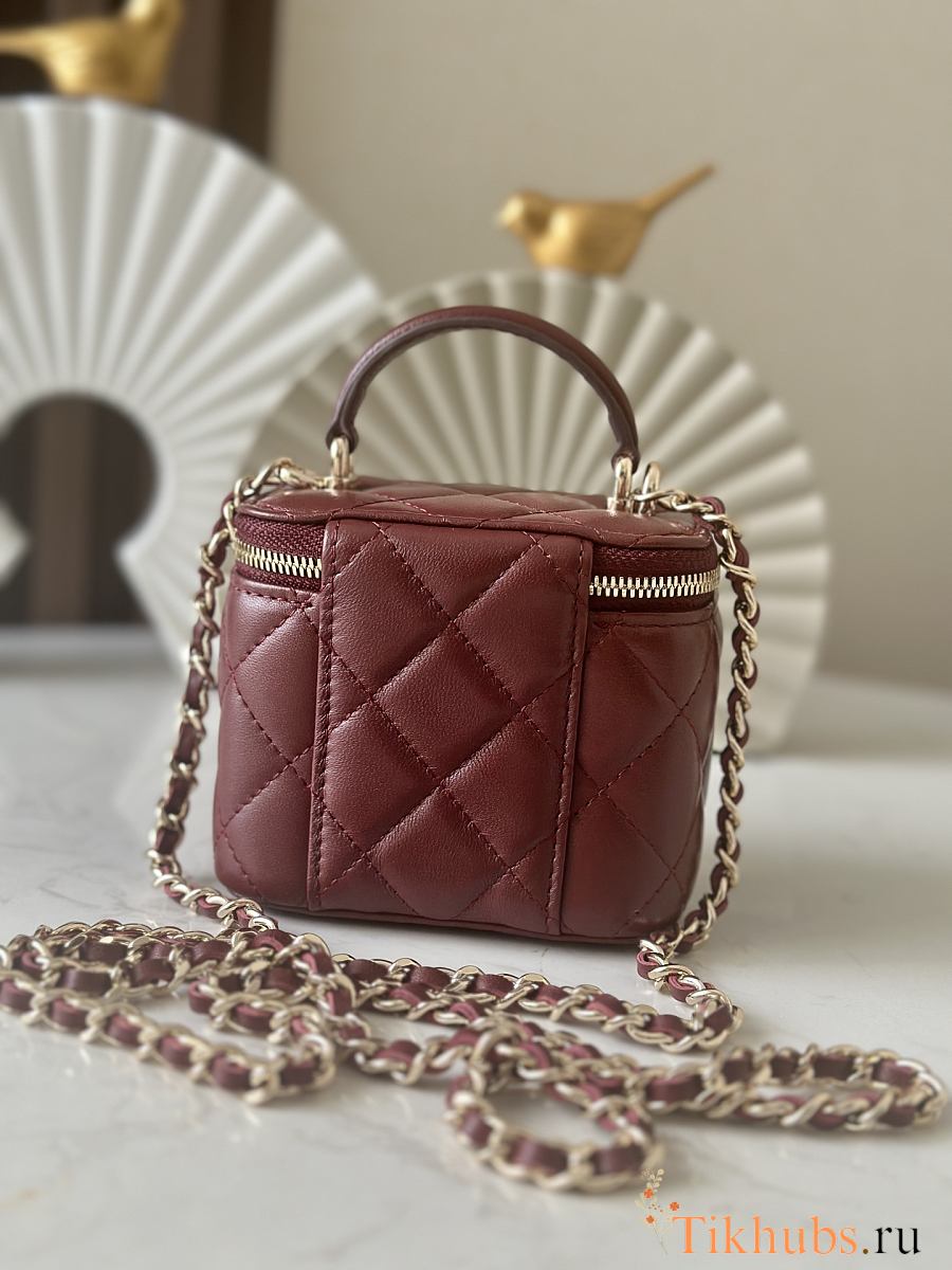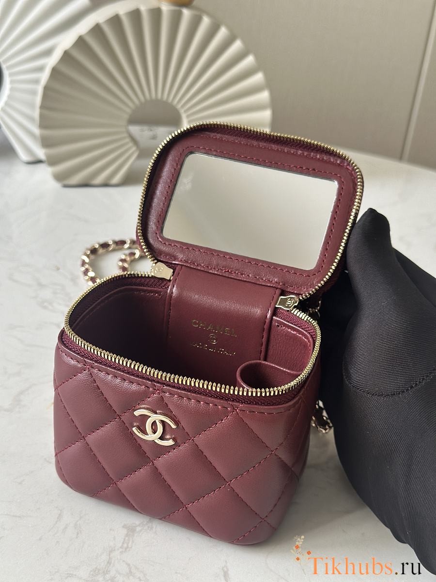 Chanel Mini Top Handle Vanity Red Wine Gold Lambskin 11x8.5x7cm
