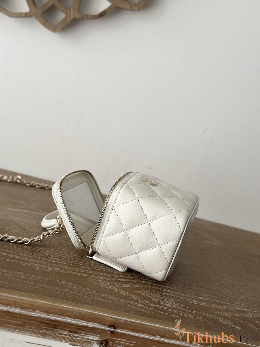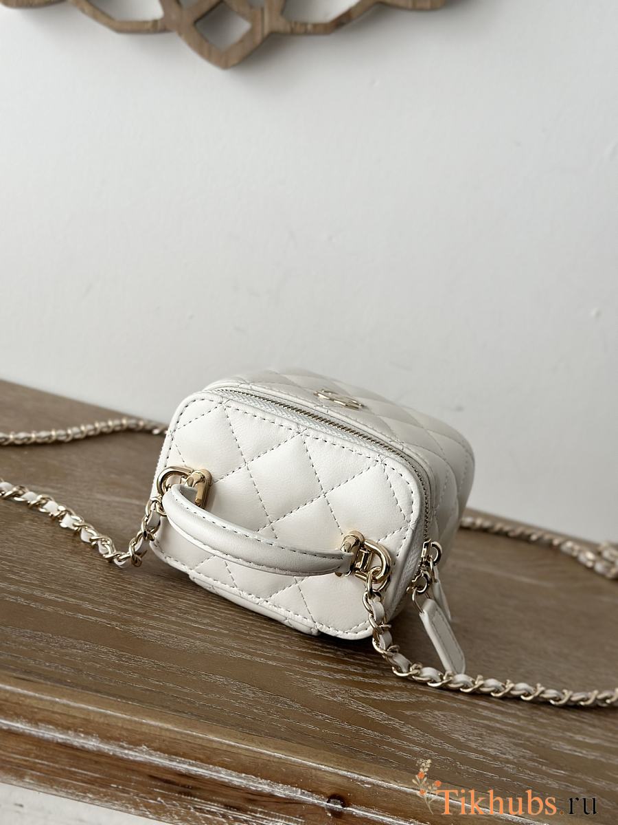 Chanel Mini Top Handle Vanity White Gold Lambskin 11x8.5x7cm
