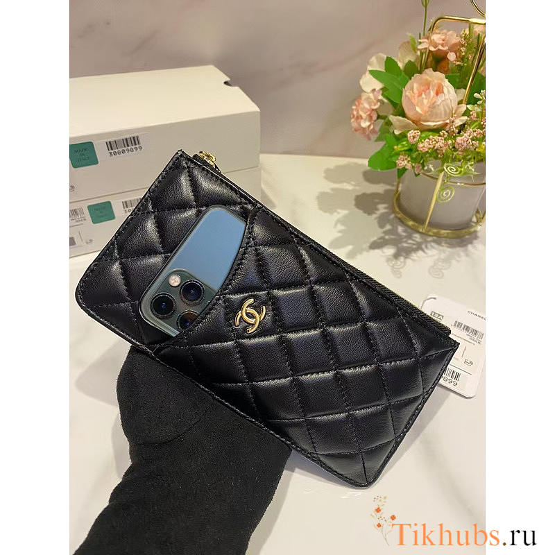 Chanel Phone Wallet Lambskin Black 19x11x2cm
