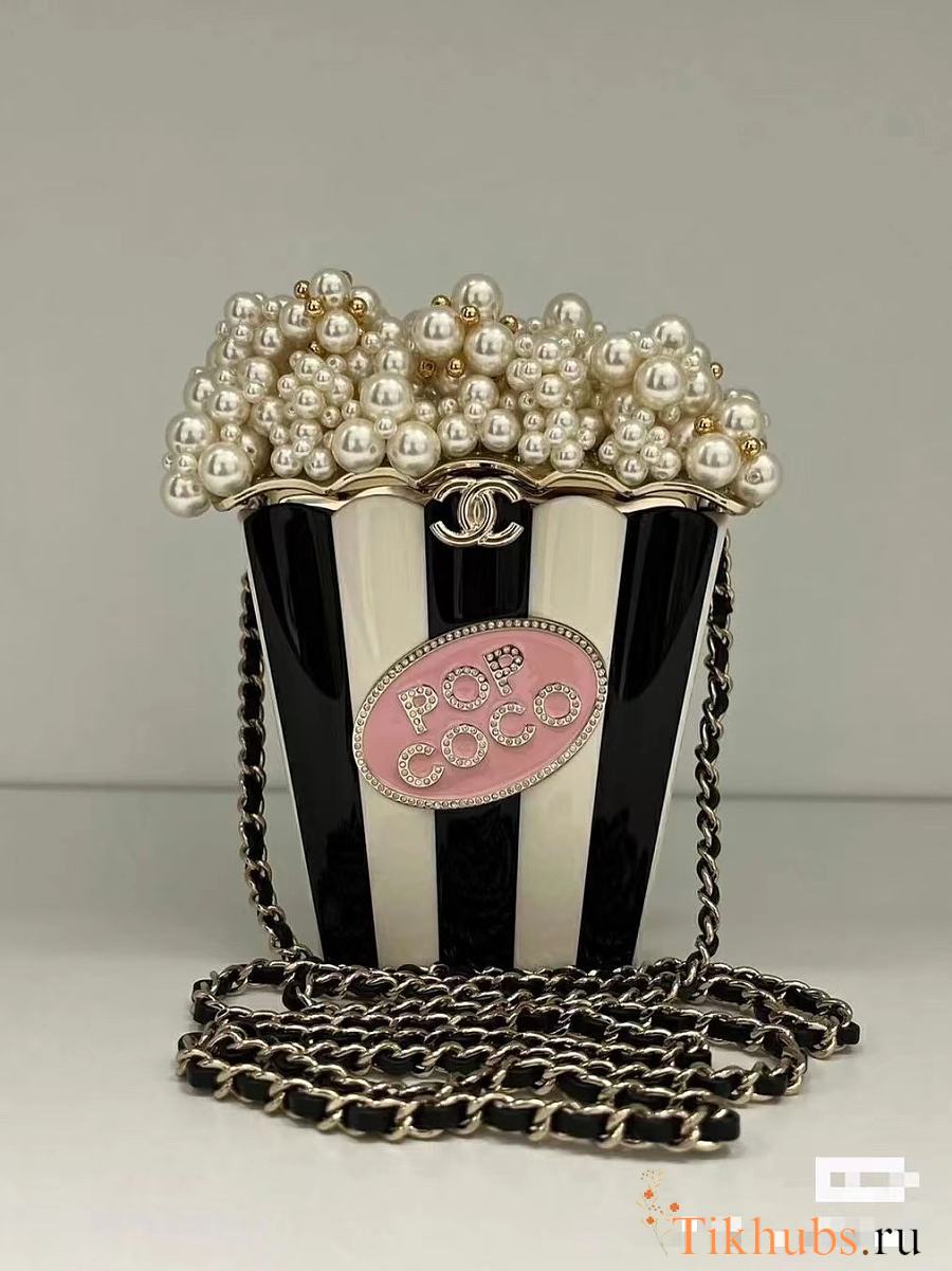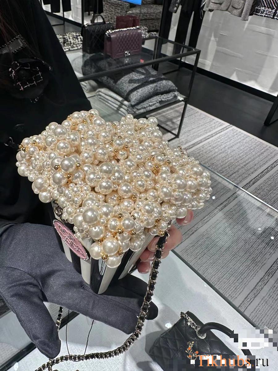 Chanel Pearl Chain Flap Bag Black Size 13 x 19 x 4 cm
