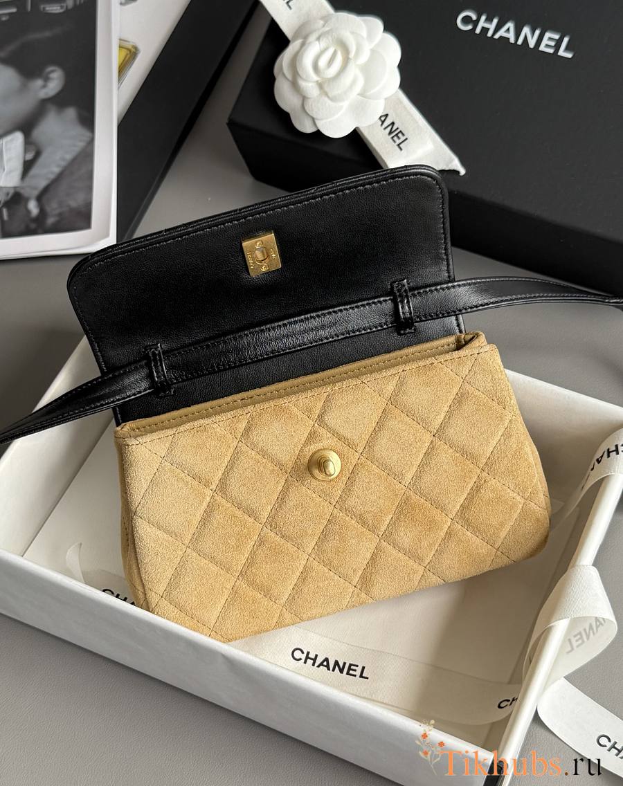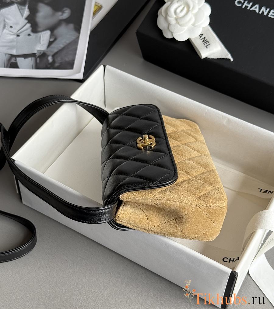 Chanel Quilted Flap Bag Suede Black 19.5x11.5x5cm