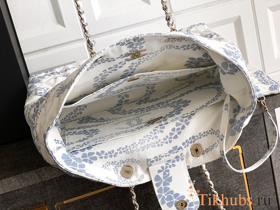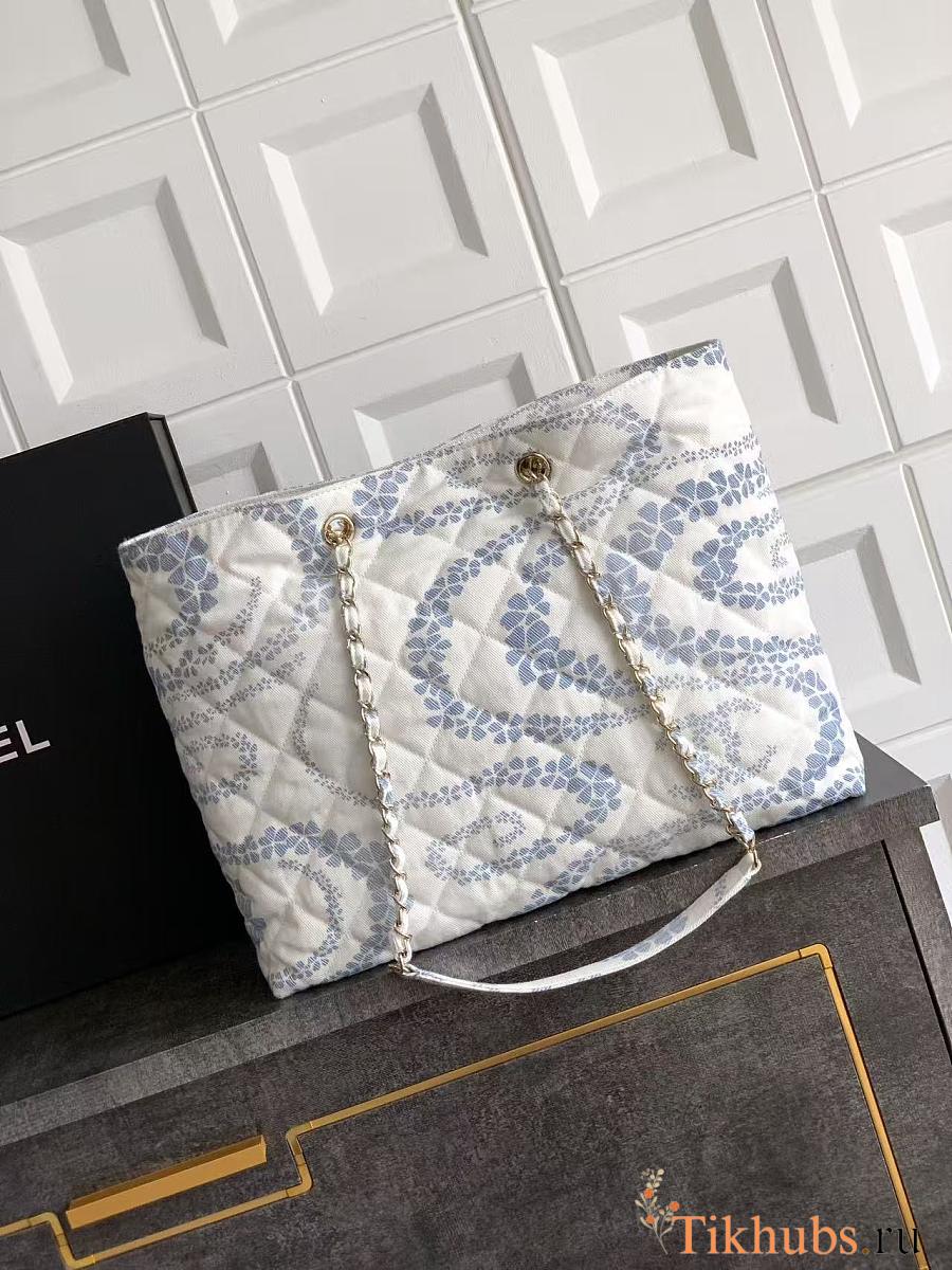 Chanel Shopping Bag Denim Light Blue White 37x28.5x13cm