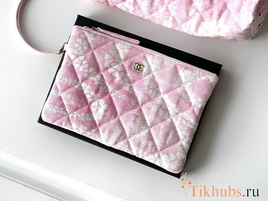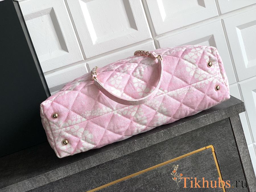 Chanel Shopping Bag Denim Light Pink White 37x28.5x13cm