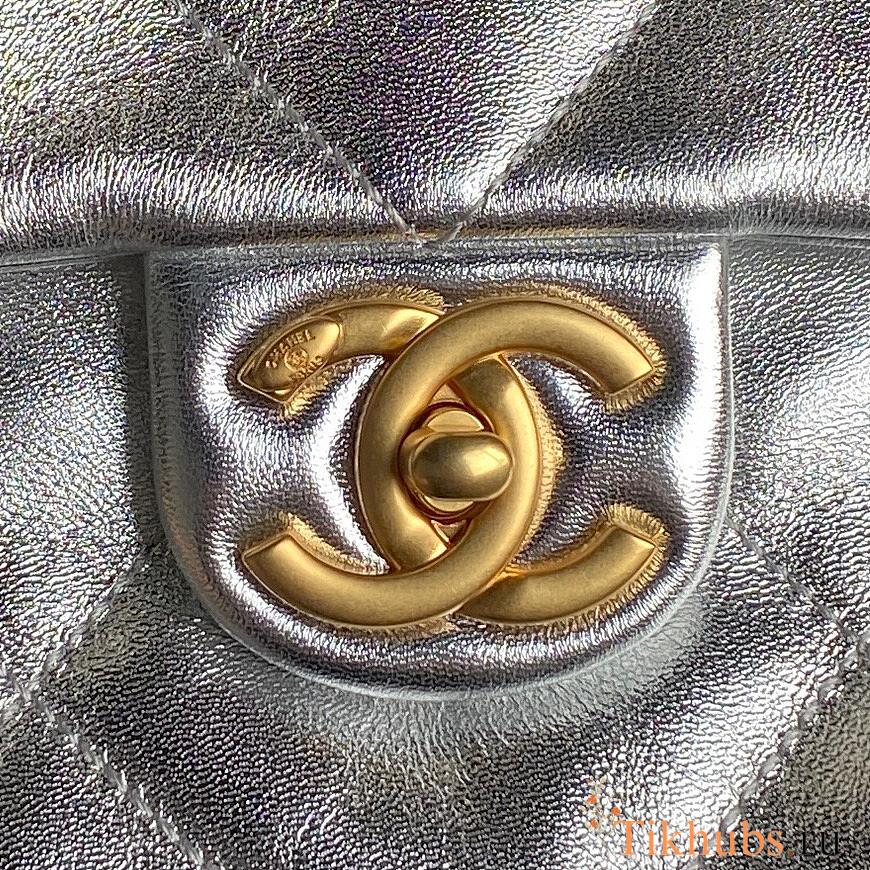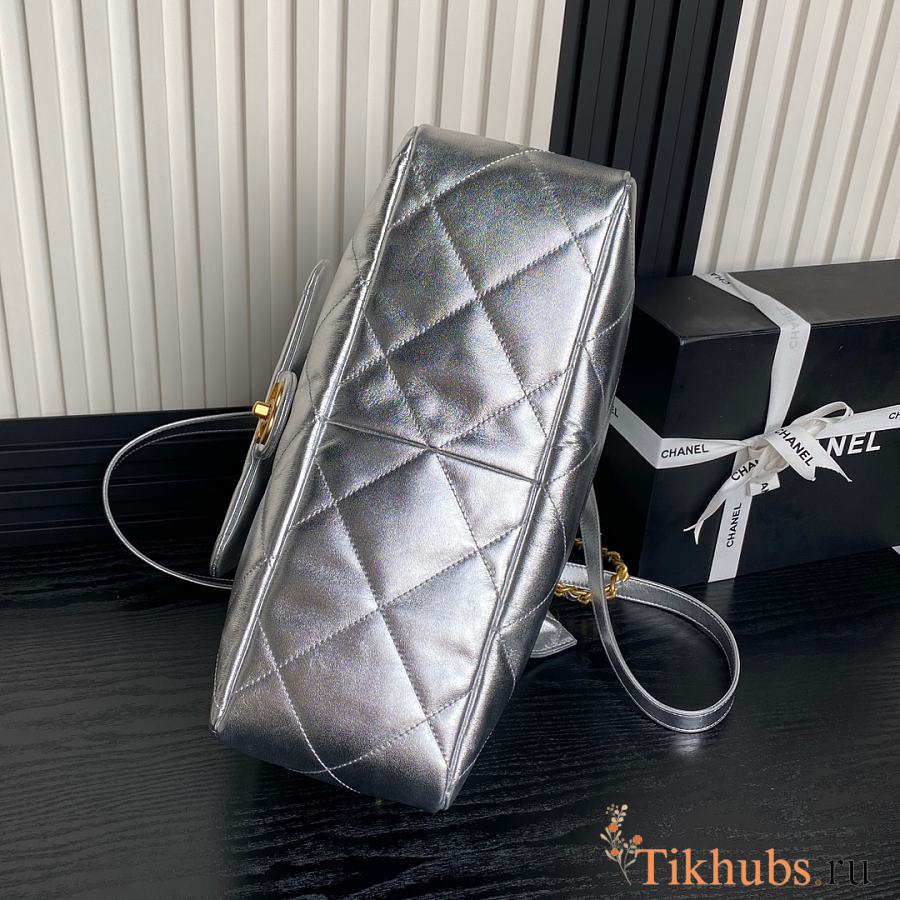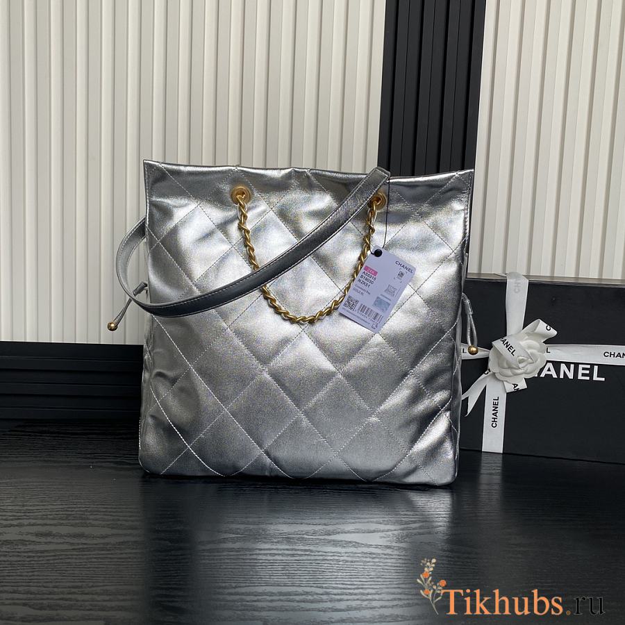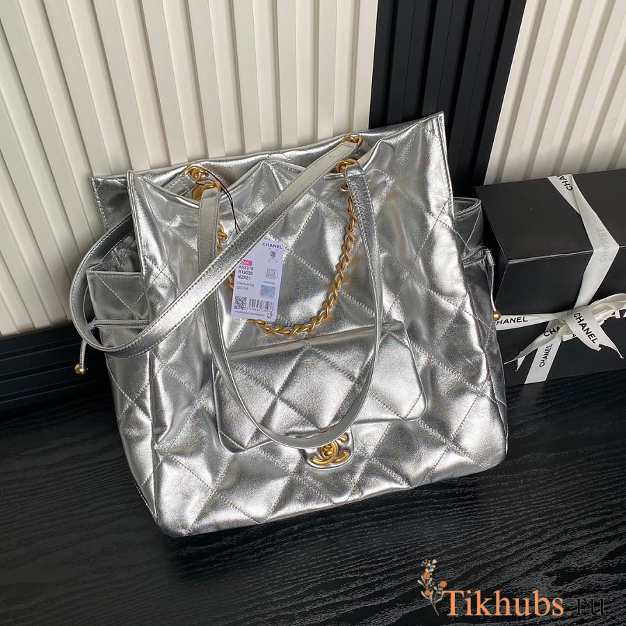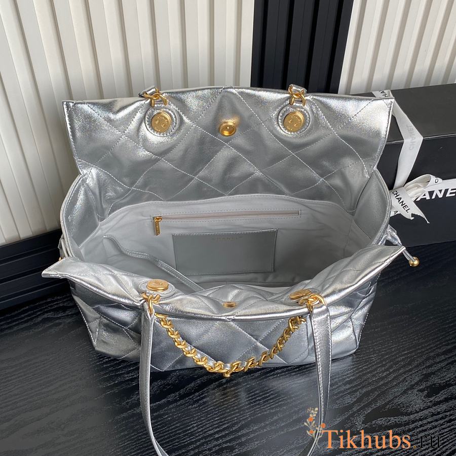 Chanel Shopping Bag Lambskin Gold Silver 34x36x12cm