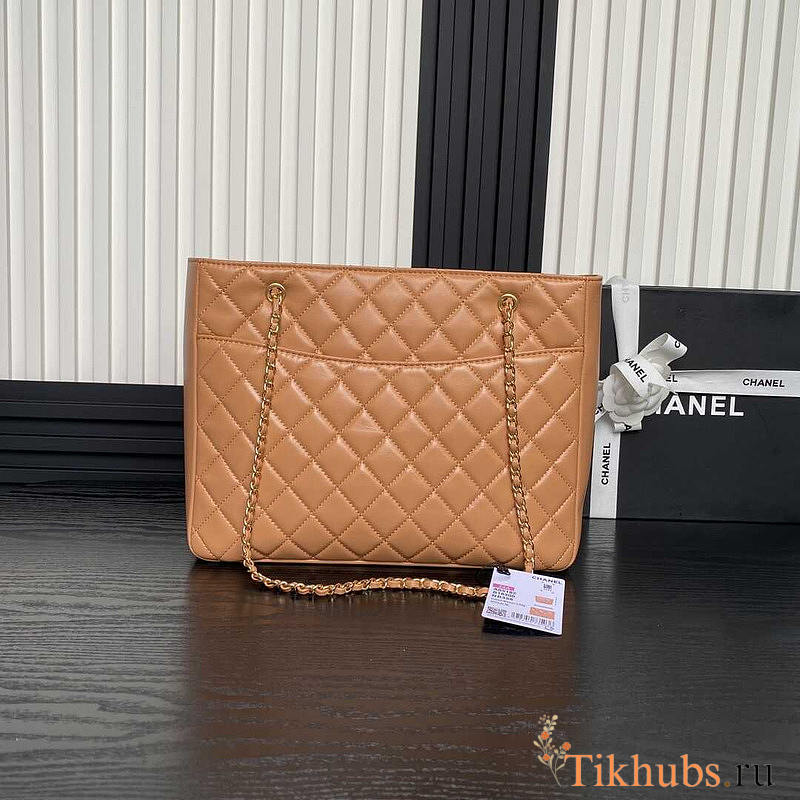 Chanel Shopping Tote Bag Caramel Lambskin Gold 32x24x12cm
