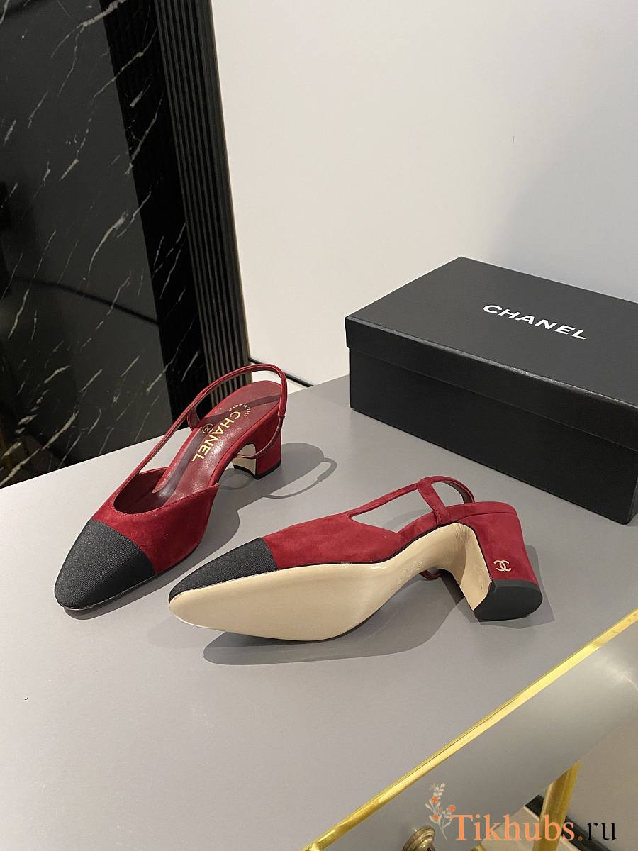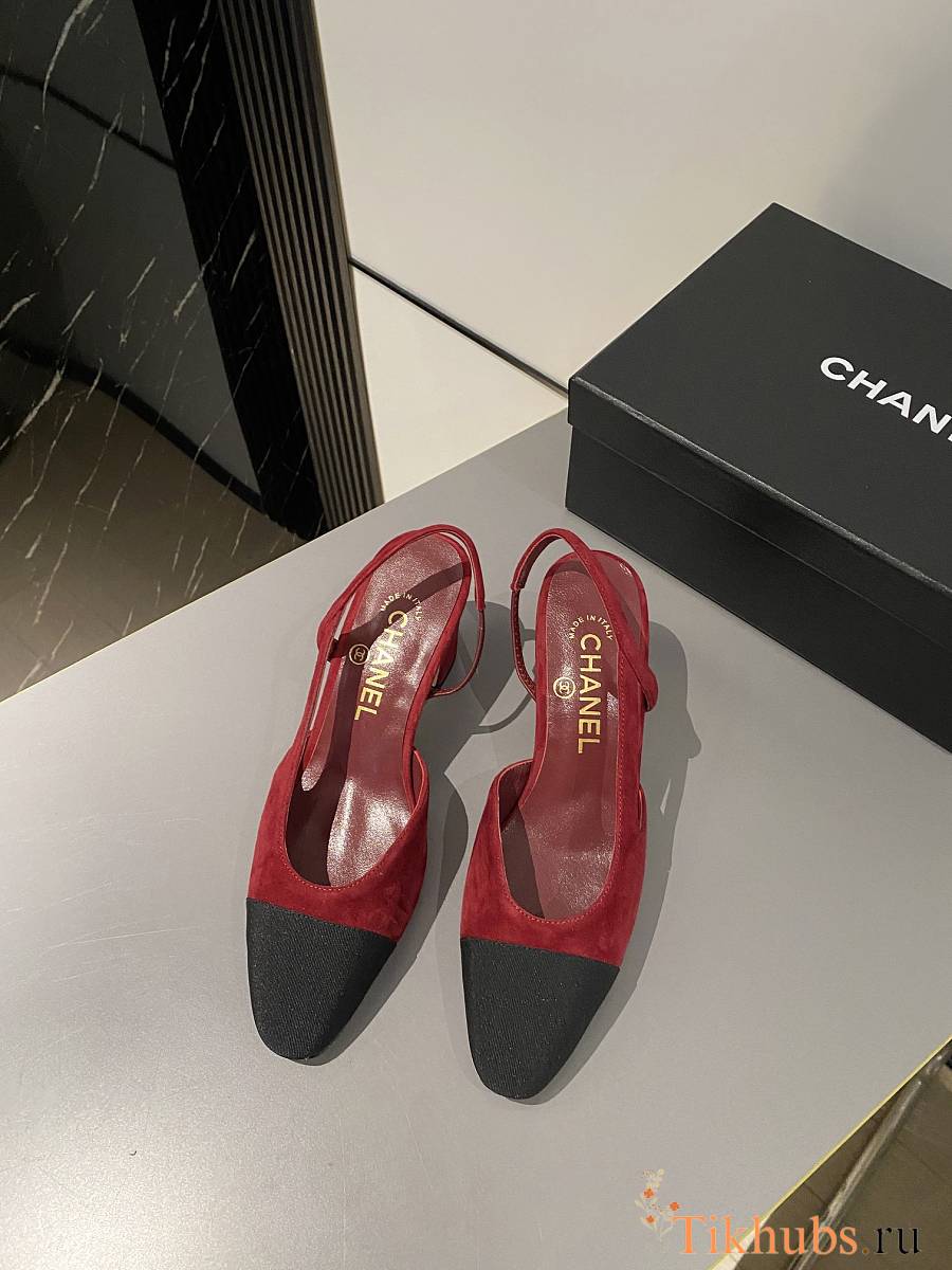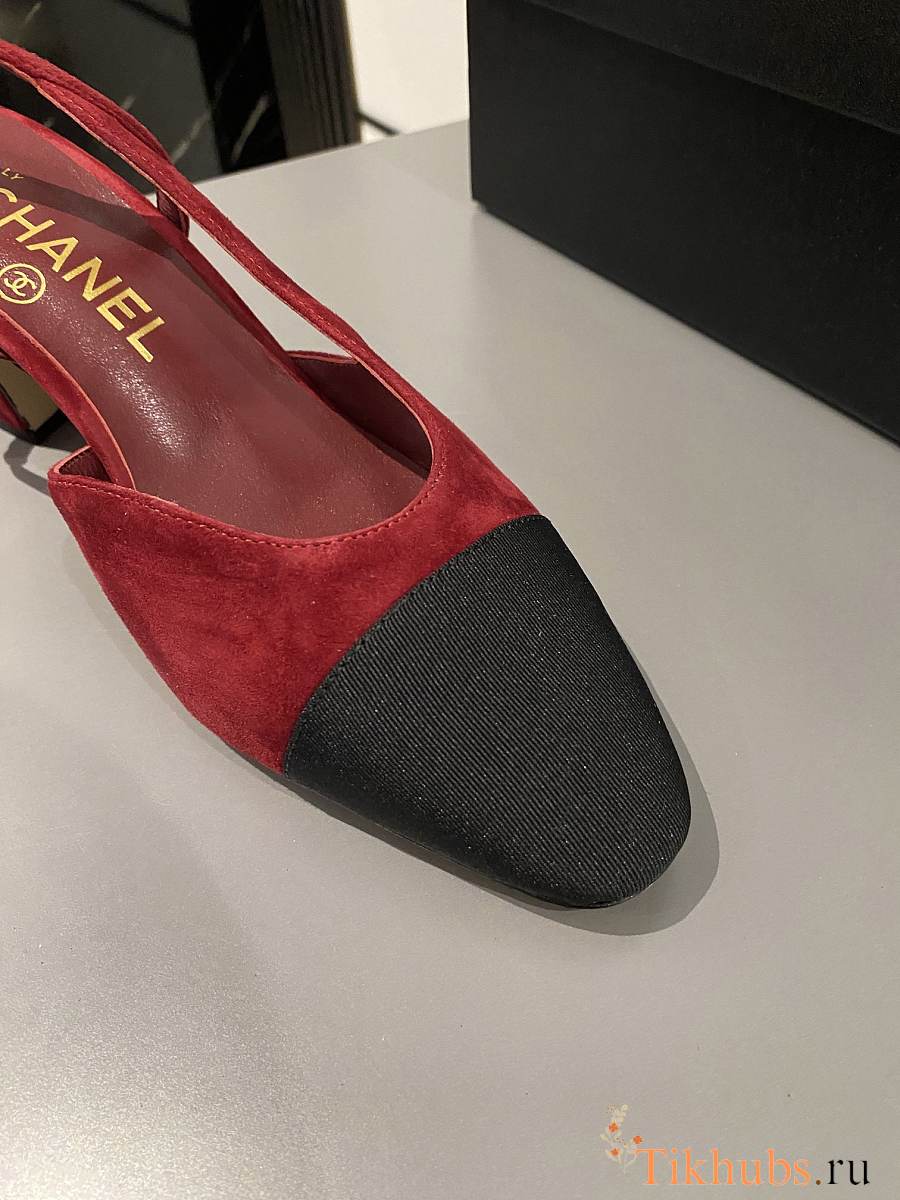 Chanel Slingback Red Suede Heel 5cm