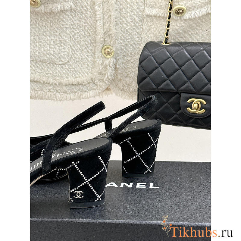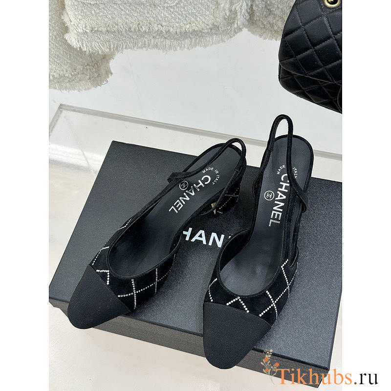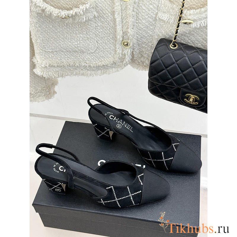 Chanel Slingbacks Black Oatskin Grosgrain Low 6cm
