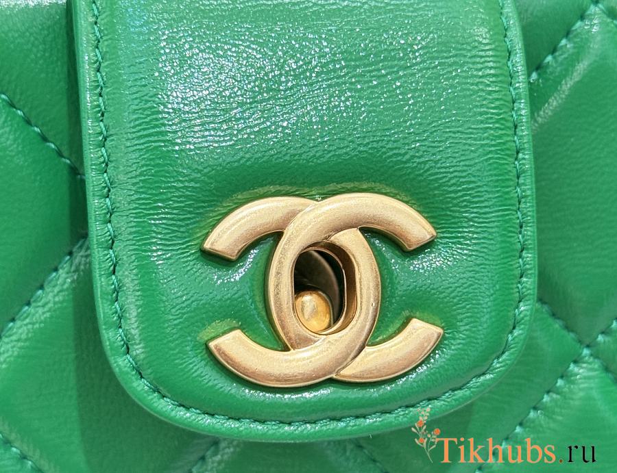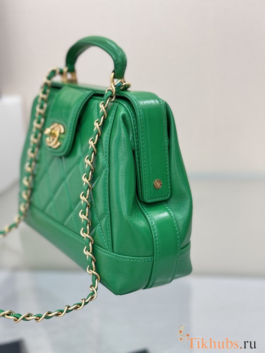 Chanel Small Bag With Handle Lambskin Green 23.5x16x8cm