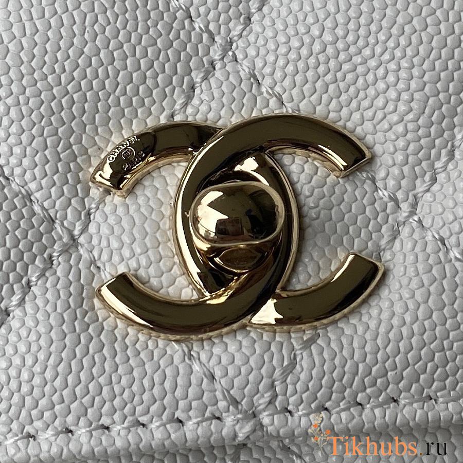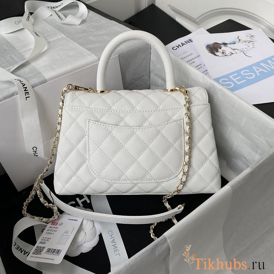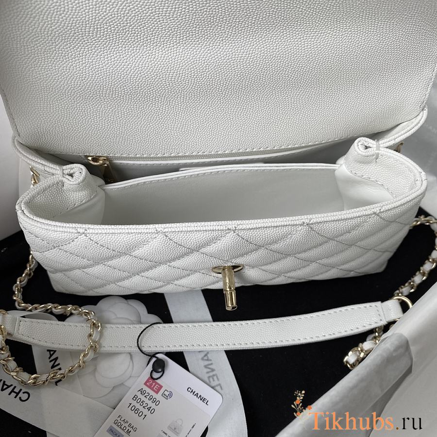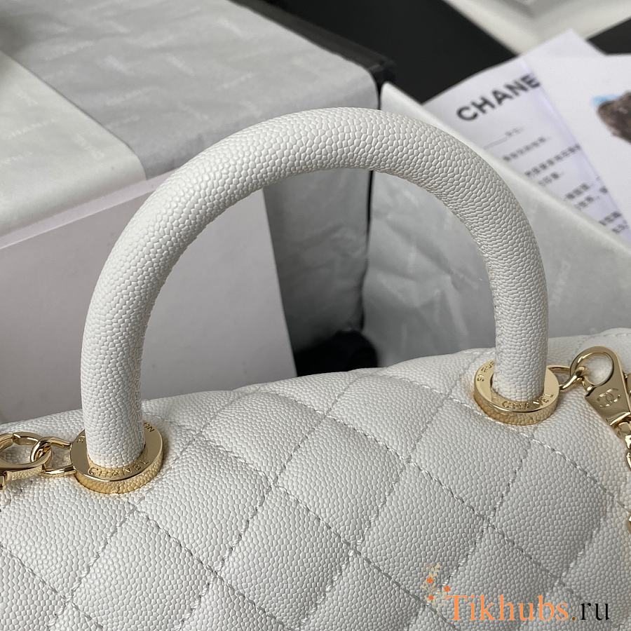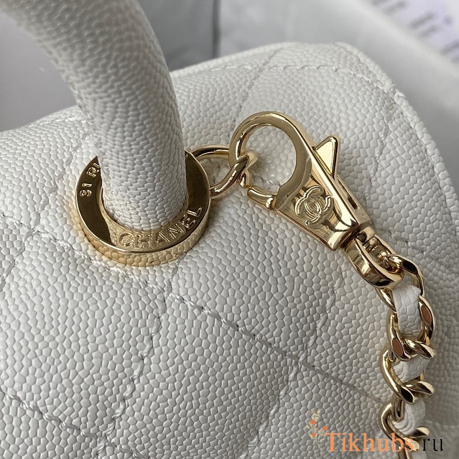 Chanel Small Coco Handle Flap Bag in white caviar leather with light gold hardware 23cm