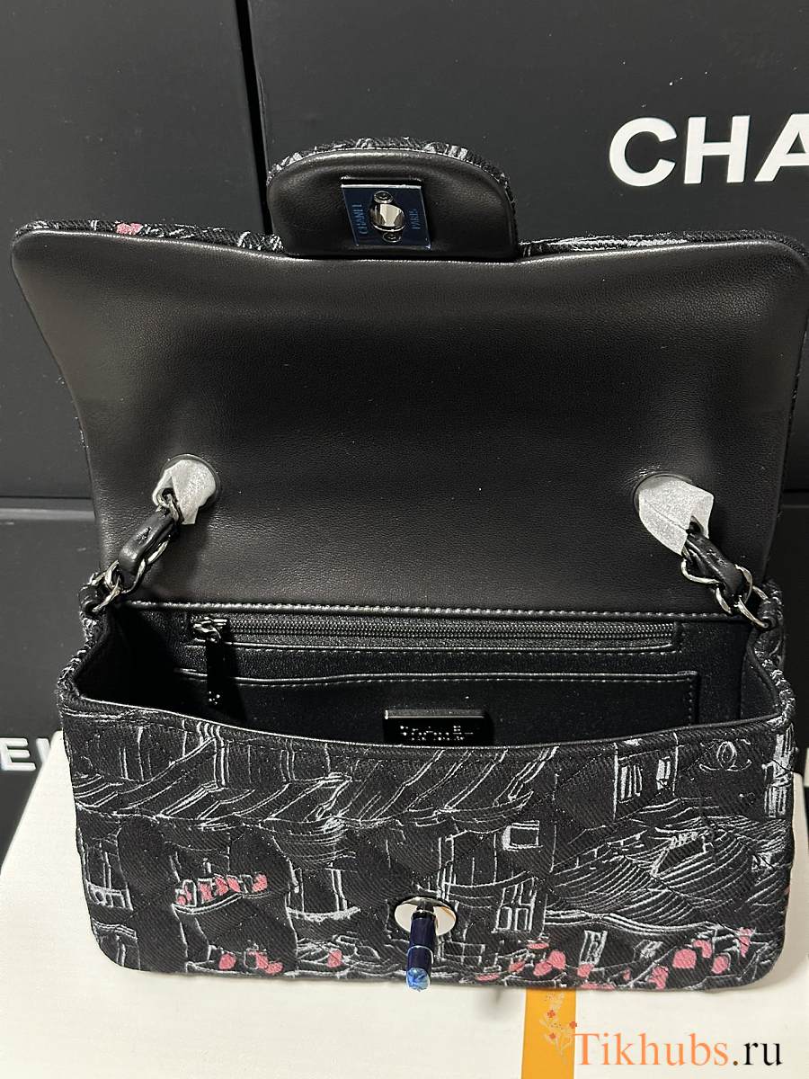 Chanel Small Evening Flap Bag Black Fabric Silver 20cm