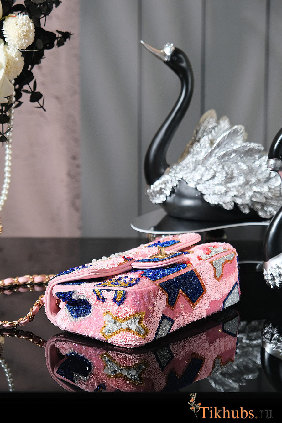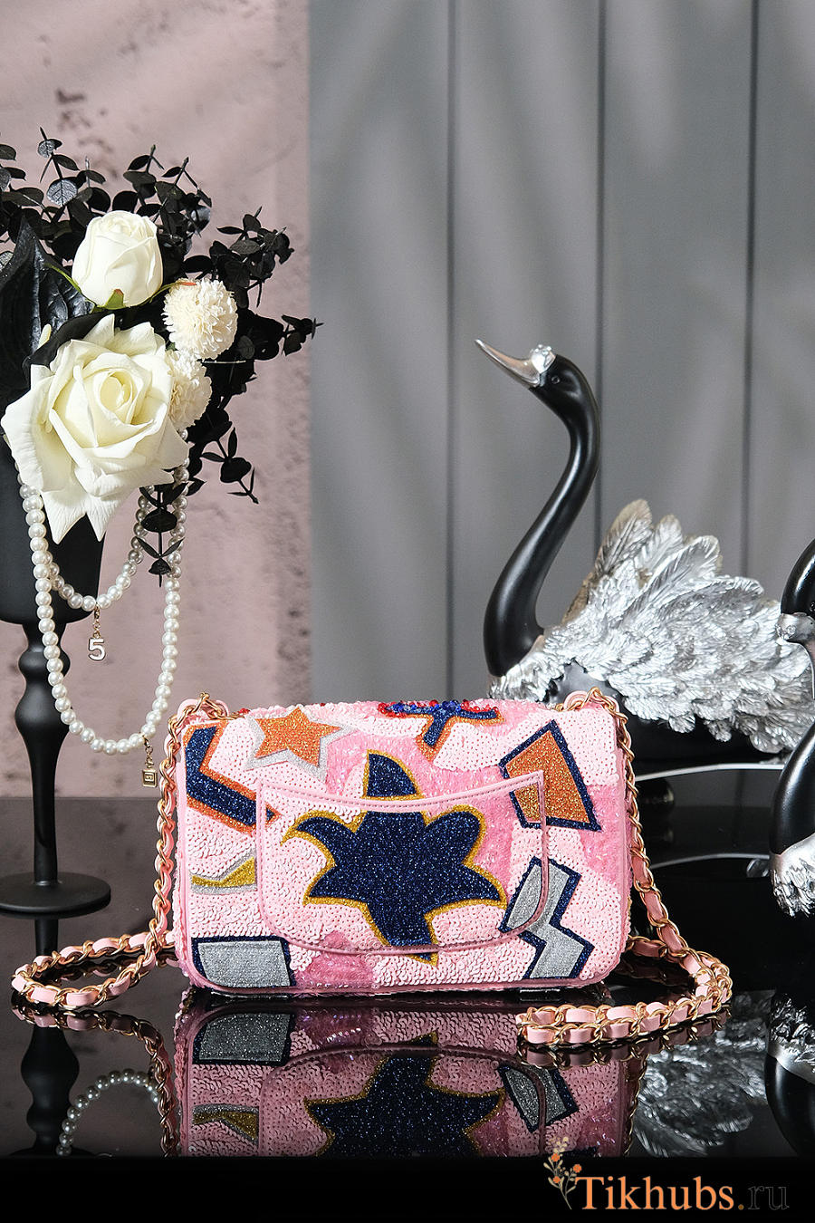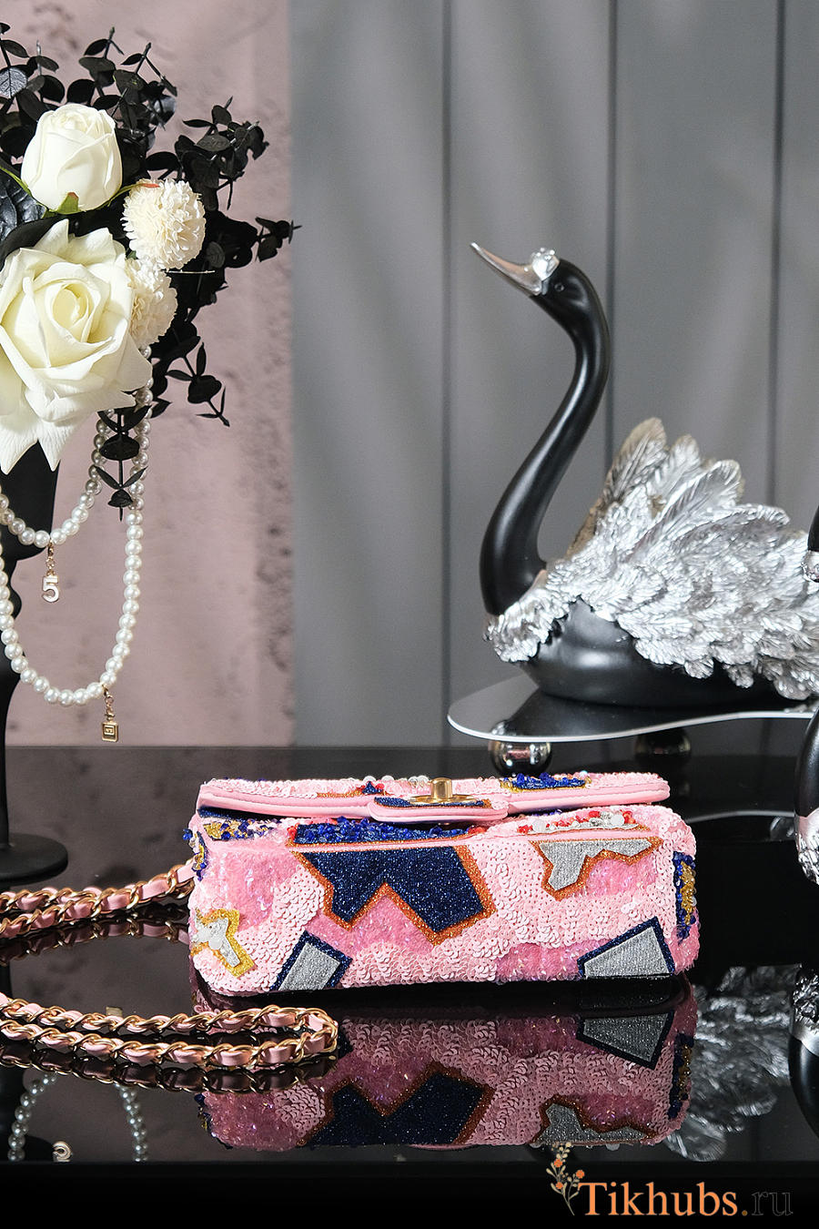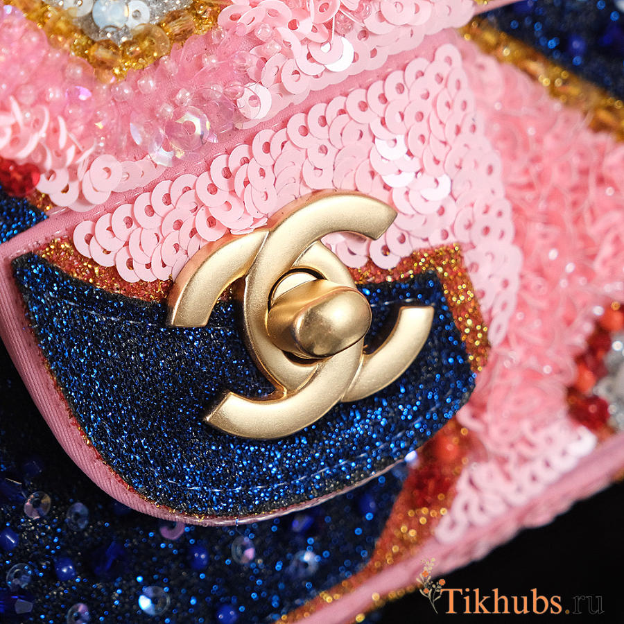 Chanel Small Flap Bag Pink / Blue Sequence Bead Spring 20cm