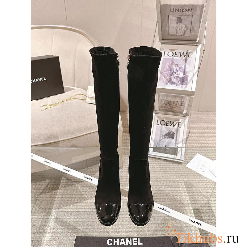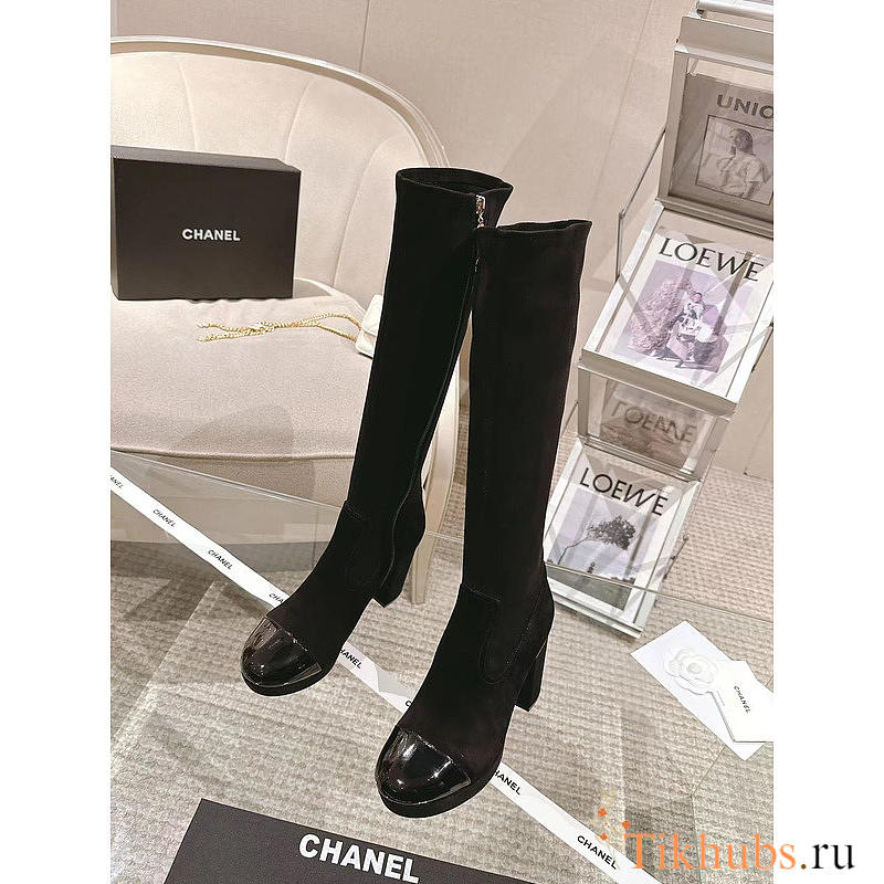 Chanel Suede Knee-High Platform Boots Black 9cm