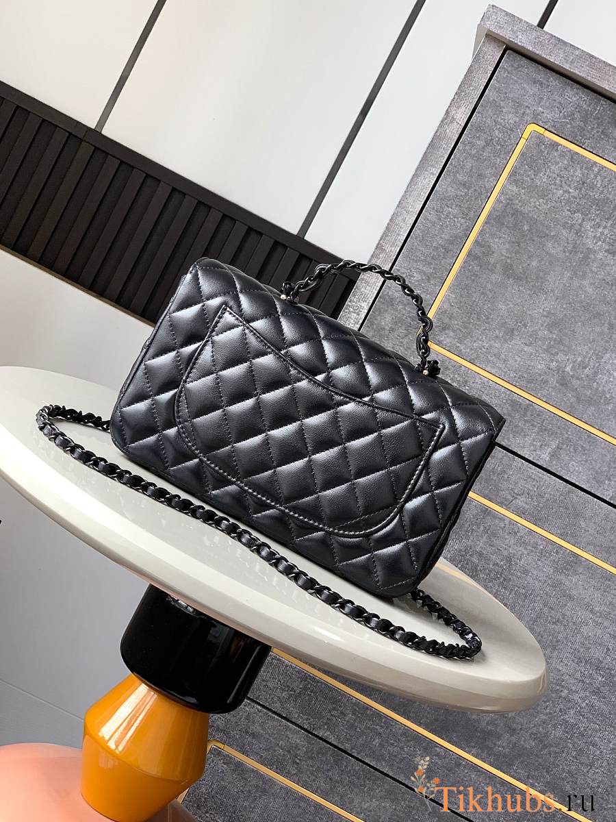 Chanel Top Handle Bag Black Lambskin 23cm