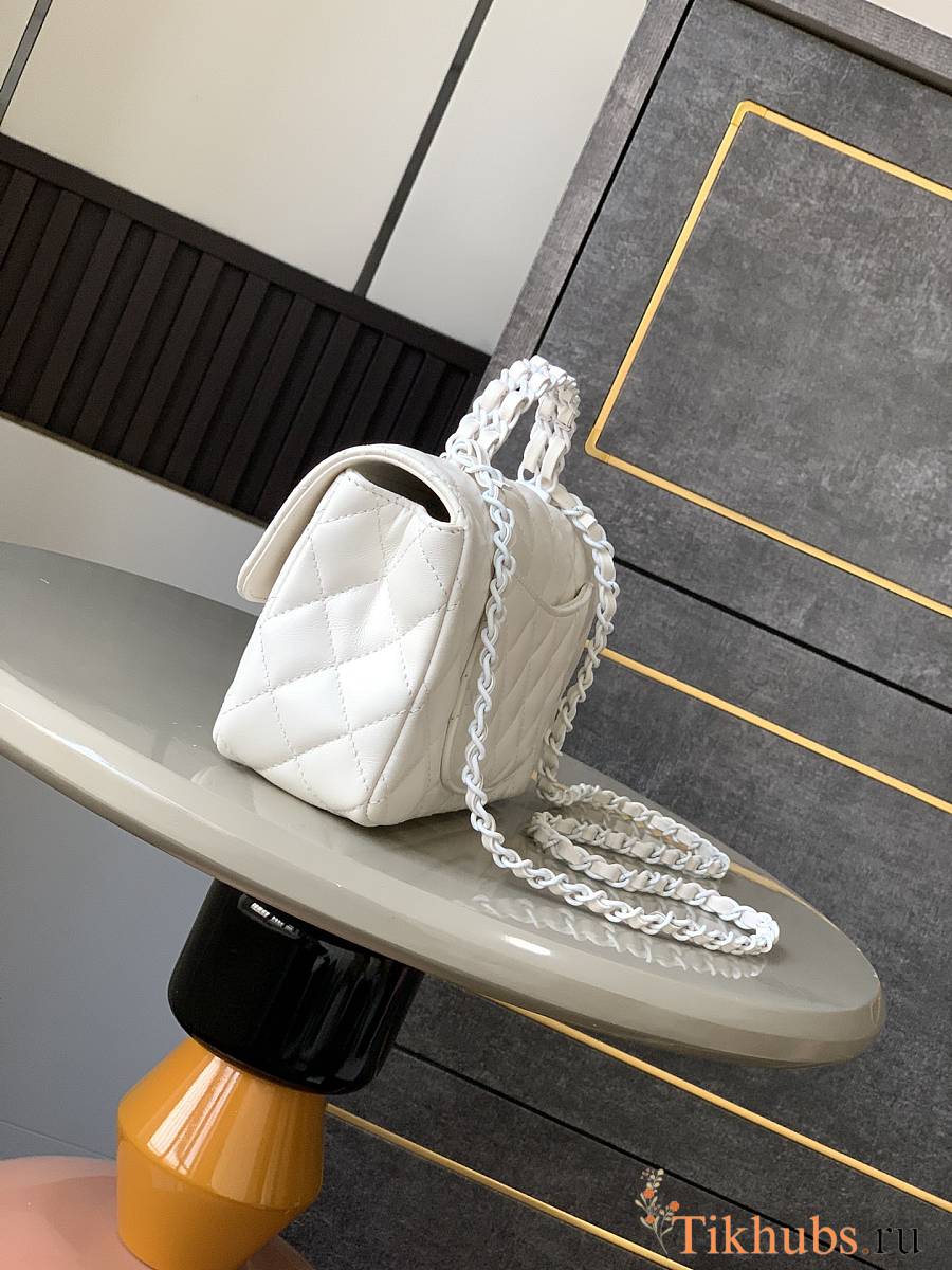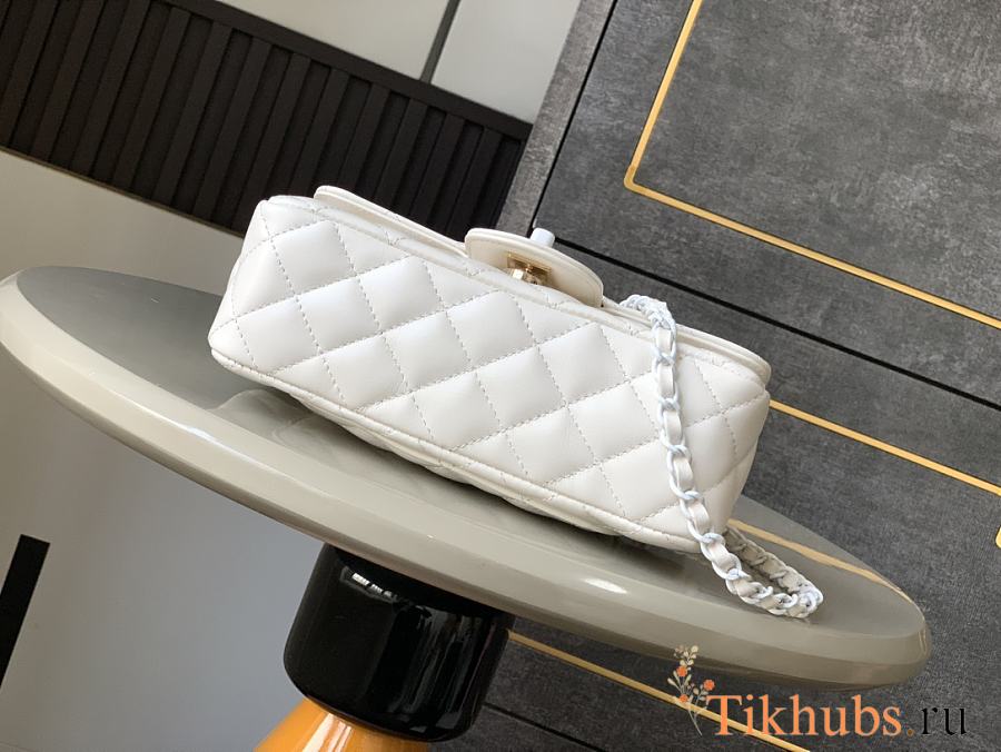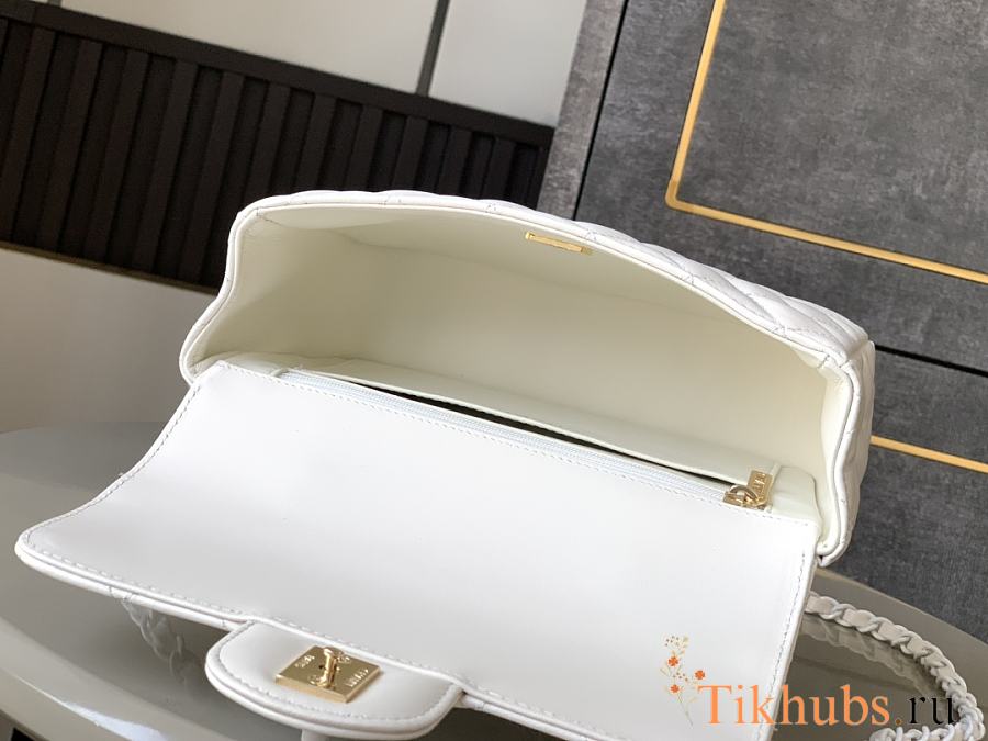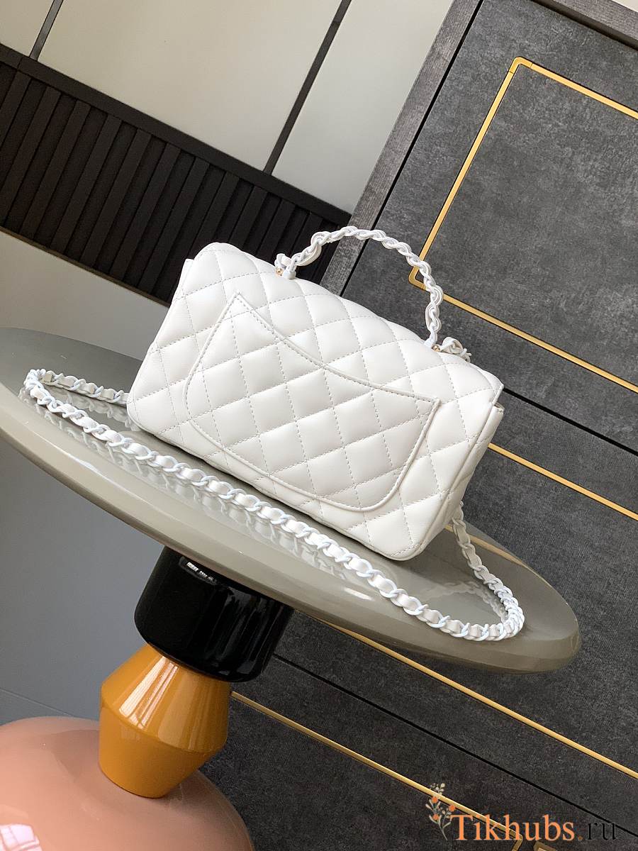 Chanel Top Handle Bag White Lambskin 20x12.5x6cm