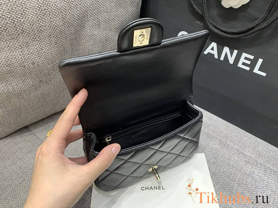 Chanel Small Flap Bag Top Handle Black 22x21x6.5cm
