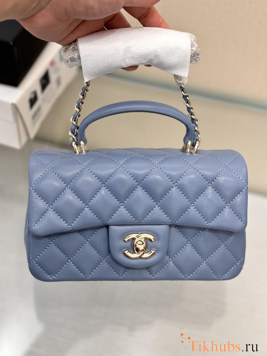 Chanel Top Handle Blue Lambskin 20cm