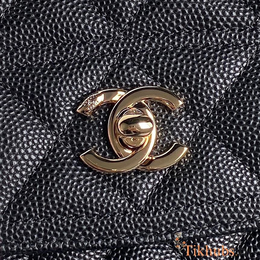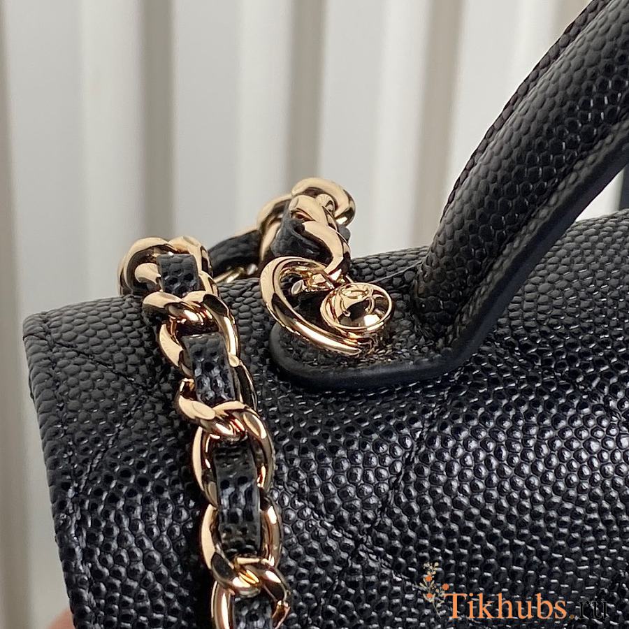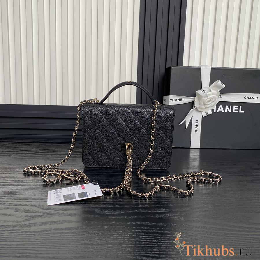 Chanel Top Handle Flap Bag Black Caviar Gold 18x14x3cm