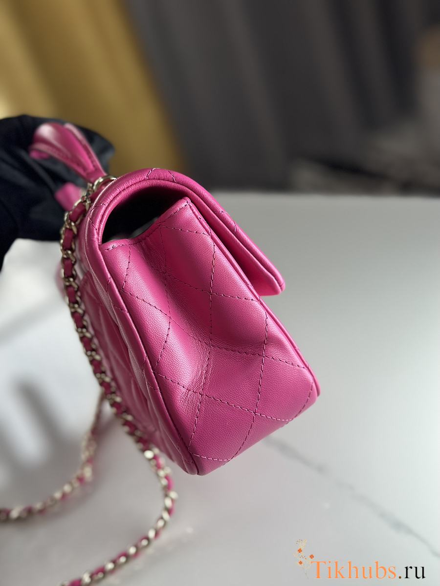 Chanel Top Handle Flap Bag Fuchsia Lambskin Light Gold 20cm